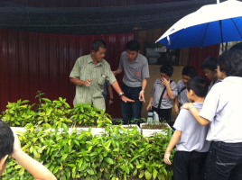 彩排结束,我们离开檀香寺,前往浮罗山背豆蔻园参观。虽然当时天不作美,但是大家仍然热诚不减。经过大约一个多小时的车程后,终于抵达豆蔻园。老板热情的招待并很用心的为我们介绍豆蔻的生长过程、结果的季节与时间、如何制作豆蔻油和豆蔻水等等。他还教会我们如何辨别豆蔻的性别呢!老板的果园除了种植豆蔻树之外,也种了丁香花及樱桃树。我们在那里享用下午茶后,各自都买了一些产品回家。