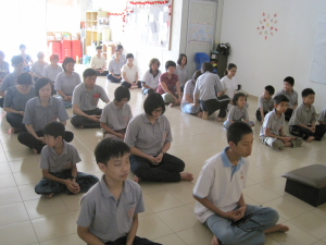 当天上午八时三十分,大众在维那的带领下准时开始做早课:唱诵佛宝歌、炉香赞、心经、南无西方极乐世界、六字佛号及四字佛号。