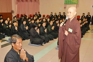 在佛三的首日,大众的心情,或许还没办法完全摄身守意,有者甚至是初次参加佛三的。无论如何,在众法师们於佛三每个环节的循循善导下,又有檀香寺常住细心安排大众的生活点滴,还有多位义工菩萨的护持等,相信每位参与的信众倍感温馨和法喜。法师还慈悲地不断叮咛大众,参加佛三者,即是表示自己就是出家了,唯独没有落发,所以更要倾力精进念佛。佛三正式开始了,大众感恩之余,铭记法师们这一天的教诲,默默地期许自己在这三天放下万缘,专精念佛。晚上约九点半后,大众便回寮休息了。隔天早上就是正授八关斋戒的环节,“我要出家了,我现在出家了!”,大家无不期盼着这一刻的到来。