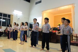 师父开示完毕后就是余兴节目时段。首先,檀香晚晴苑的老菩萨呈献两首歌曲,歌名是“功圆果满时”和“来学佛”;接着,檀香周五佛学班的学生呈献手语“幸福的脸”,希望所有的人都可以从歌词中领略幸福的内涵;接下来,檀香幼儿园的小朋友们也带来手语“你打开我的眼睛”;最后,檀香幼儿园的老师、员工及义工带领来宾一起跳健康舞,为表演时段划下完美的句号。