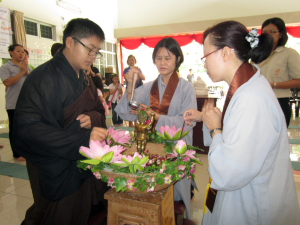 当天,理大学子和毕业学长们,以及檀香寺法侣等,纷纷来到善友之家观礼,由唯悟法师主持的洒净仪式,共同见证了理大善友之家搬迁新址的历史扉页。