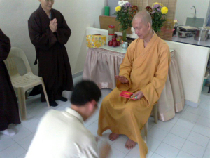 檀香寺住持上唯下悟法师受邀前来主持新家的洒净仪式。而檀香寺的爱心爸妈和大众,以及理大善友之家的成员,也都纷纷过来祝福拉曼善友之家。