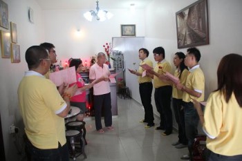 过后,大家便怀着欢天喜地的心情浩浩荡荡地出发了! 今年我们以持诵《心经》和唱《佛光照曜你》来为住户们祝贺, 然后再唱首“新年欢乐贺岁”歌献给主人家。当时大家脸上皆挂着笑容,彼此握手言欢祝贺, 声声的祝福, 祥言吉语不绝于耳, 愿大家都过个好年。大家互相交流分享, 把彼此间的距离拉近了。一家大小乐融融,法喜充满!