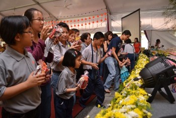 早上8时30分,爱心家族们陆陆续续来到大悲殿集合。此行一共有四辆巴士,加上学生们的家长,人数高达百多位。9时30分左右,学生皆已经到齐了。老师们点了名,大众向佛菩萨告假后,便依据已安排好的巴士上車。