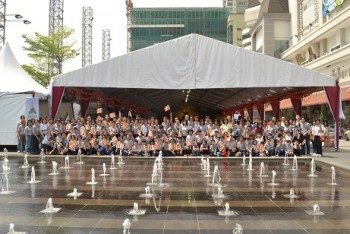抵达目的地,已经是10时左右。时代广场外面已搭起好几个帐篷,工作人员便安排我们坐在帐篷里等候。我们见到玉佛庄严地端坐在台上。玉佛的雕刻容貌与菩提伽耶佛像的容貌非常相似。各寺院的学生也被安排坐在帐篷內,耐心的等候轮流供佛,场面非常热闹。