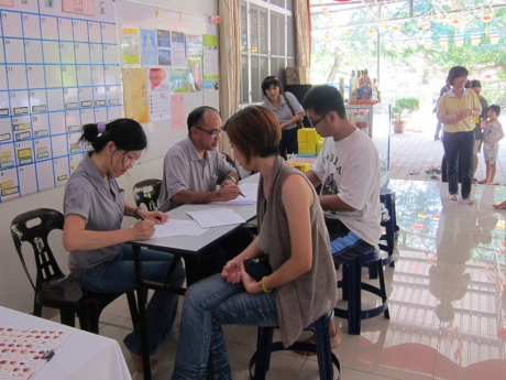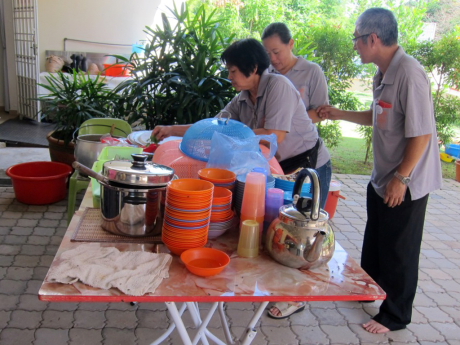 大约下午四点,活动将近完毕,大家都忙着收拾场地。有四位刚抵达想要捐血的菩萨,因床位和工具都收拾了而不能如愿的进行,唯有期待今年十月的第二次捐血运动了。