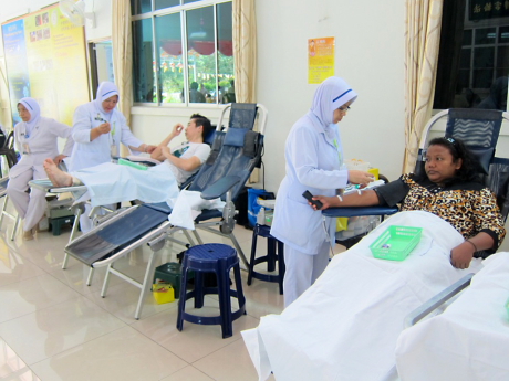 当天早上十时正开始,不断有人到来报名捐血,场面热闹,义工和医院职员都忙得欢喜。香积菩萨们也准备了丰富的早餐和午餐,好让捐血者能补回体力。当天共有53 人报名捐血,42人当天体力佳而成功捐出珍贵的血。除此之外,报名同意临终捐献器官者有16位。
