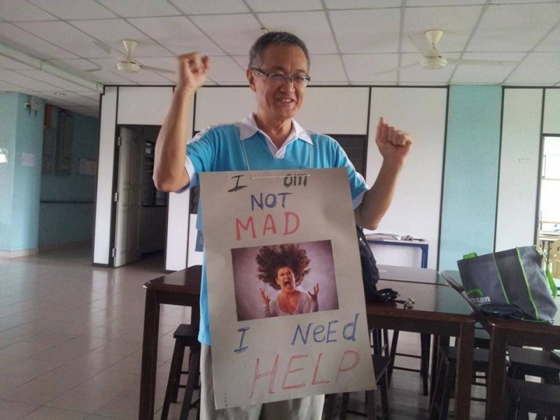 檀香爱心福利中心义工们在早前,已经准备了各种款式告示牌,并提上了标题像 “我有名字,不要叫我疯子”,“我们的关怀与尊重是他们痊愈的良药” ,希望借这个机会让大众能善待精神病患者,了解他们也需要关怀与尊重。