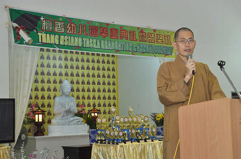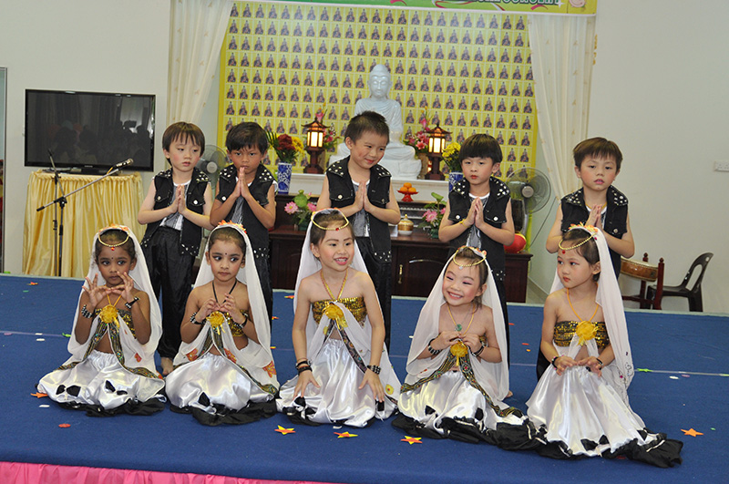 颁奖仪式在真如法师和檀香幼儿园分园主任吴宝琴的报告后进行。紧接下来分别由宝宝组Barney,幼二太阳花,幼二康乃馨,安亲班,幼儿海绵宝宝,幼儿小叮当,幼一小蜜蜂和幼一粉红豹的小菩萨为来宾们呈现一连串精彩的表演,他们的表现不失童真。
