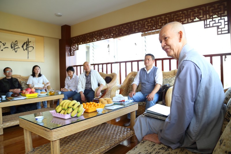 隔天一早,参访千年古松及般若台后,我们便驱车直上,绕过磨镜台,赴南台寺拜访南岳佛教协会怀辉会长。南台寺也是曹洞祖庭,亦有天下法源之称。适逢湖南卫视征求取景,拍摄茶与禅之节目。除了佛教教育,师父也与怀辉法师对打坐参禅讨论起来,破斥文字禅的假象,令在场的我们获益匪浅。