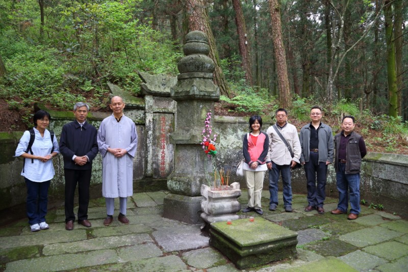 用了午斋,徐教授带我们到金刚舍利塔朝拜。值得一提的是,我们还有机会到与天台宗二祖慧思非常有渊源的三生塔。在这慧思祖师一生岩,二生塔,三生藏的地方,让我们众人皆感三生有幸,除了绕塔朝拜,更与师父合照留念。