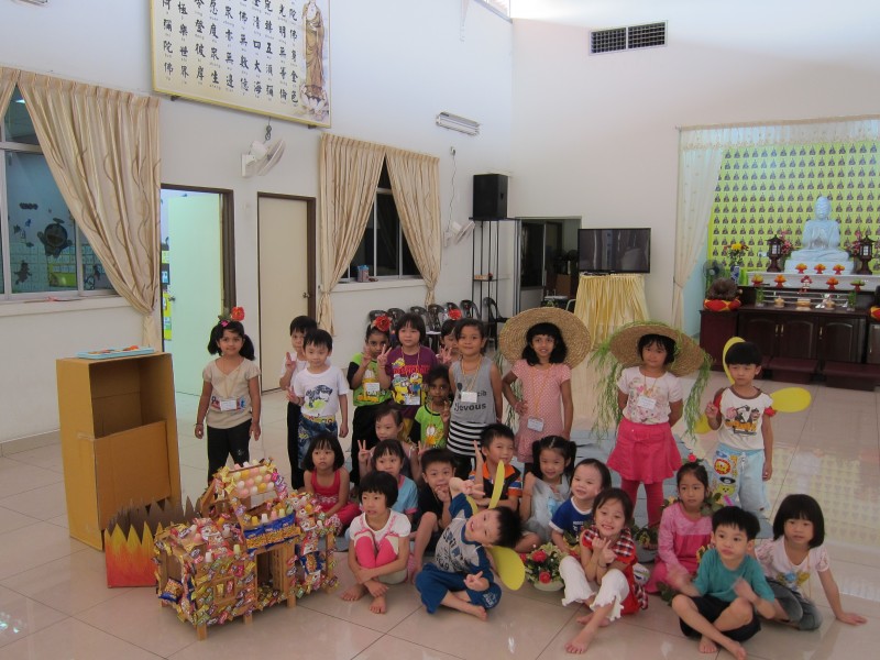 当天早上8:30分, 小菩萨及爱心老师们都陆陆续续地来报到参加 幼儿生活营。 9点准时,吴老师便在檀香大殿进行2014年幼儿生活营的开幕仪式。同时,吴老师也说明了生活营简介,宗旨,介绍工委及营规。
