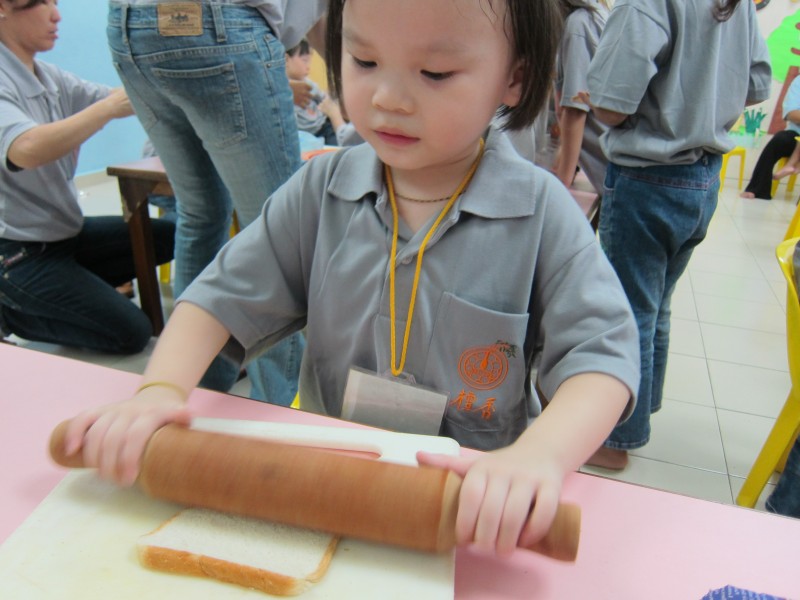 在“小小厨师”环节,制做简单巧克力、面包寿司,让小菩萨们接触基本的生活技能,同时培养合群、分工合作的美德。自制的巧克力也表达了小菩萨们对父母无私付出和不辞劳苦的感激。