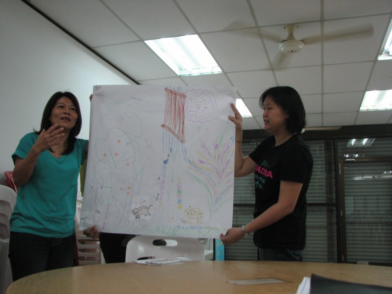 五月份亲子讲座主题为:教育的目标 (幸福的人生)。讲师是黄翠妮。此讲座想传达的是:教育不只是注重成绩而是要教育出有承担能力的孩子。此讲座一反“你讲我听”的传统方式,代之以“体验”的方式让家长亲身去体会不同的教育方式。讲师用故事“为什么马来貘没有尾巴”掀开序幕。讲师除了“讲”还“演”出整个故事。出席的家长除了也跟着故事情节演,也被要求画出故事里自己喜欢的角色。家长们被分成五人一组画出一座森林,再把画好的动物放(粘)进森林里,接着编出一个新故事。出席者都很有创意编出了精彩的故事。故事里的角色有主导型的,也有跟从他人的脚步模仿型的。讲师也要求家长们去思考自己教育孩子的方式是属于那一类型的。