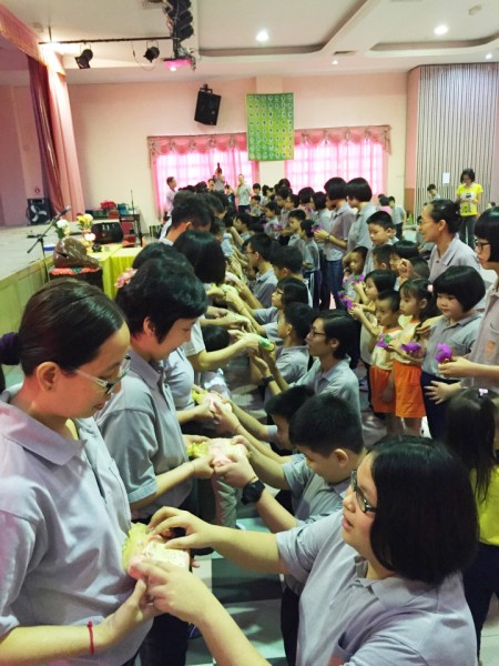 真信法师说结业典礼的意义在于感恩师长,庆生会则在于感恩父母,所以我们在结业典礼及庆生会上要感恩父母、师长,并许愿向佛陀学习,从而培养良好的道德,以报“四重恩”。期间,法师也以妙趣问答的方式,带出了“福智十善法” 是我们感恩爸爸妈妈的方式,以加强学员们对“福智十善法”的认知及提升
