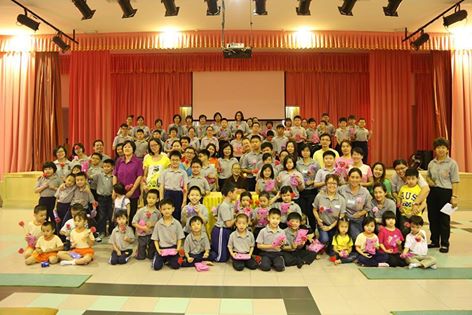 接下来,大会再次恭请真信法师颁发奖项。此次的奖项计有二种:(一)勤学奖,给予课业上、出席率等皆优异的学员;(二)服务奖,给予在檀香服务10年以上的义工、老师、爱心爸妈等。在10时30分,共有12位来自爱心家族的成员为大众带来了两首动听的歌曲——《阿弥陀佛在心间》及《祈祷》。银铃悦耳的歌声后,就是学员们为全体爱心老师、义工、爱心爸妈等献上感恩礼物。所谓“礼轻情意重”,学员们那一刹那真实显现出来的感恩之心以及那深情地拥抱才是感恩会上的无上珍宝。