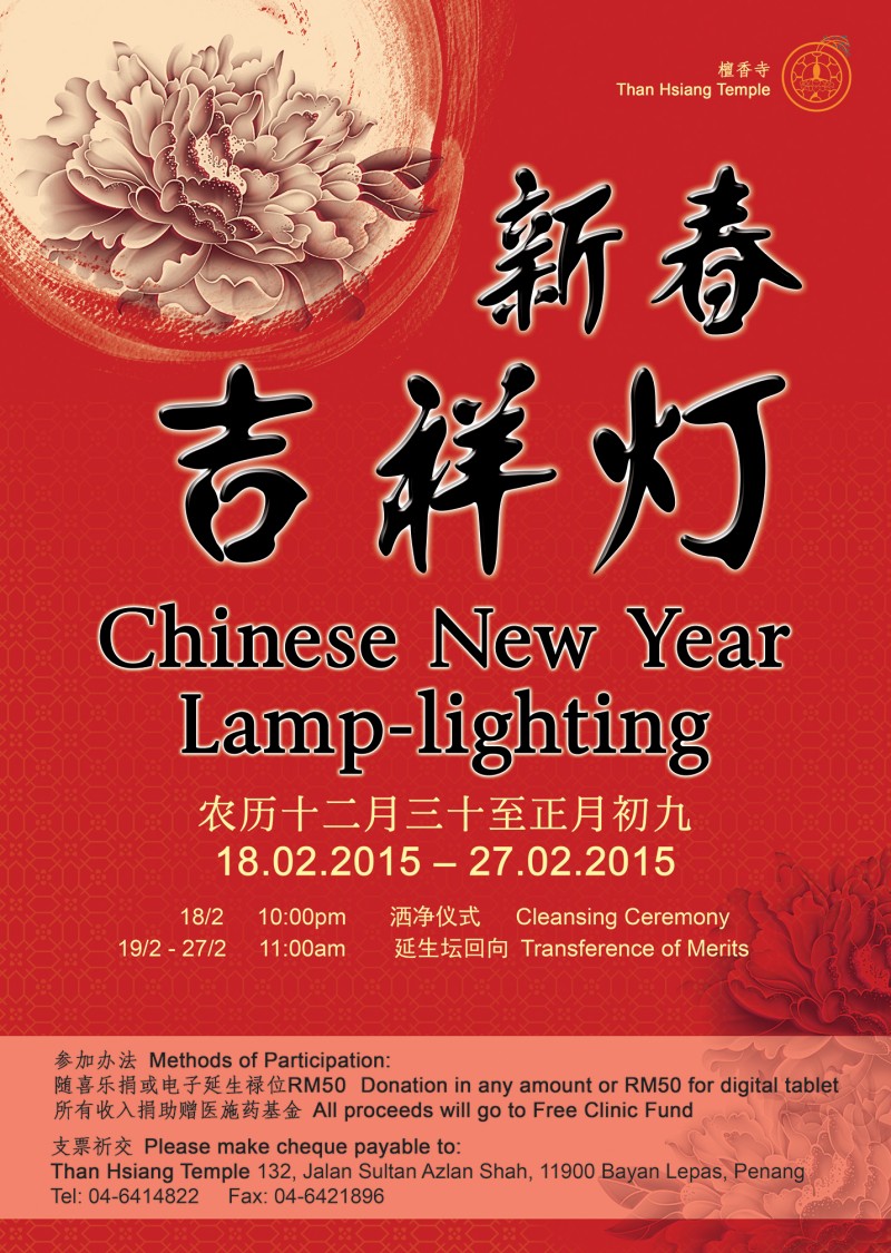 Submitted by Ah Jin on Thu, 08/01/2015 - 12:55 Body: 参加办法: 随喜乐捐或电子延生禄位RM50 所有收入捐助赠医施药基金 支票祈交:Than Hsiang Temple 132, Jalan Sultan Azlan Shah, 11900 Bayan Lepas, Penang Tel: 04-6414822 Fax: 04-6421896 宣传 Log in to post comments6430 reads