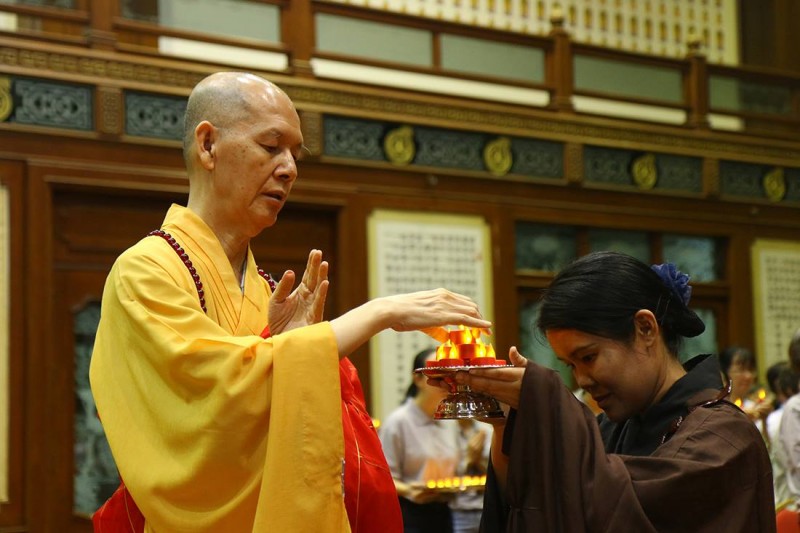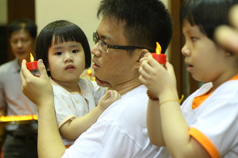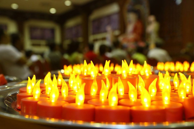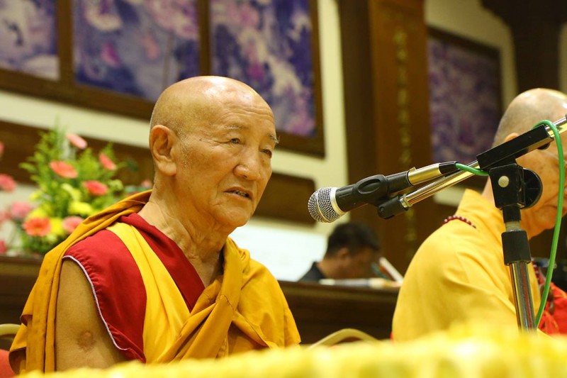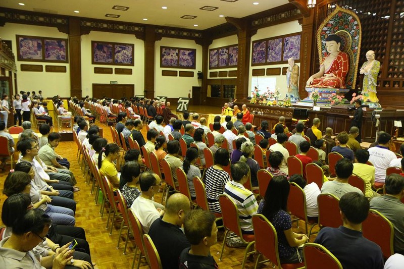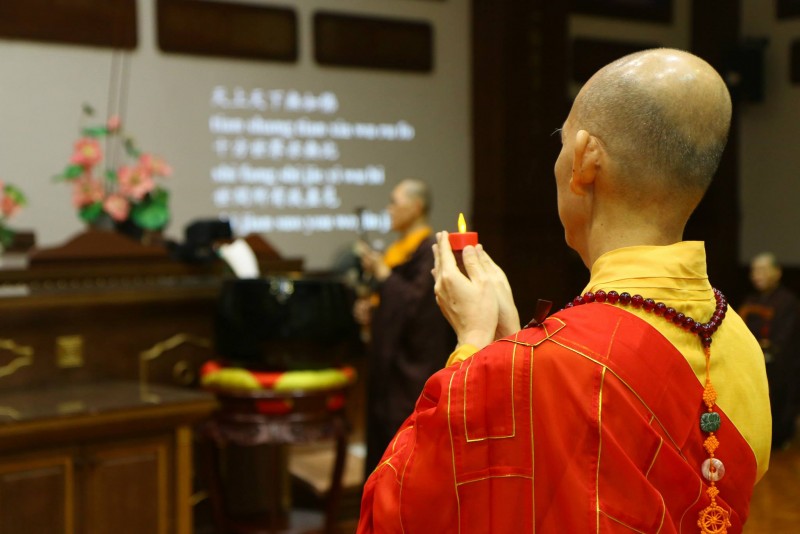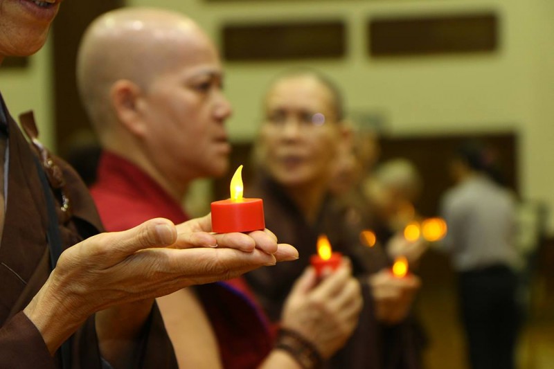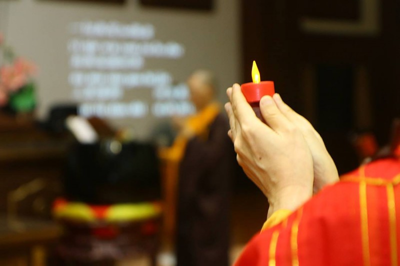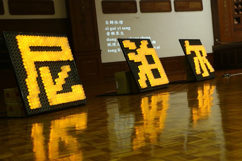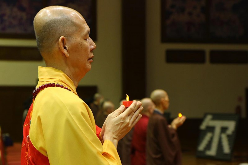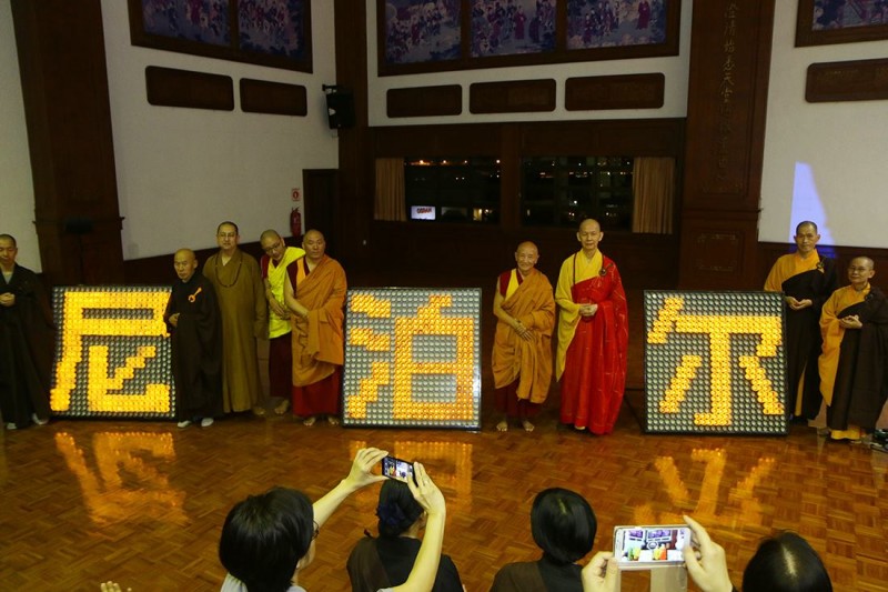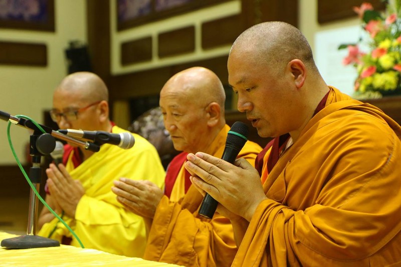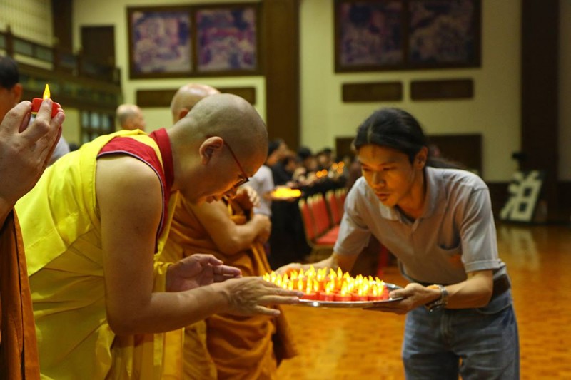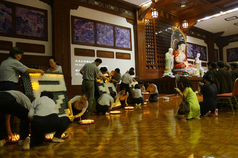 本寺院还邀请了西藏著名的法师——洛桑强巴下密院堪苏仁波切出席此祈福大会。洛桑强巴下密院堪苏仁波切于祈福大会开始之际为众生进行简短的开示后,带领众生一起手持小花灯,共同诚心地为尼泊尔灾民诵经与祈福。事后,众人将手中小花灯于大板上拼凑成“尼泊尔”三大字,把众生诵经的福德回向给尼泊尔的灾民和往生者。整个祈福大会约进行了两个小时才圆满结束。