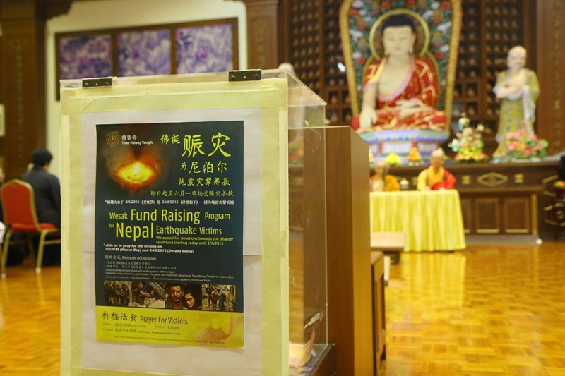 天灾无情,人间仍处处有温情。虽国度不同,但处于槟城的檀香寺秉着先天下之忧而忧,后天下之乐而乐的精神,在二零一五年五月三日于檀香寺大雄殿举办一场为尼泊尔灾民祈福的大会和募捐活动。此活动得到许多善心人士踊跃参与和支持,对于乐捐更是义不容辞,慷慨解囊。目前的募款数目高达230000马币,大家都本着一颗菩提之心,希望能为远方的灾民尽绵力,希望能给予灾民绝望的心中燃起一点希望的火苗。