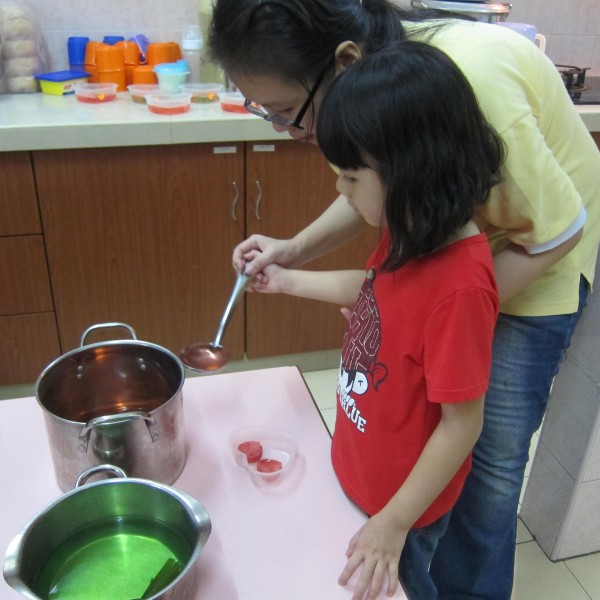 小菩萨们也化生小小厨师,在爱心老师的指导下准备爱心水果燕菜。自制的爱心燕菜加上自制的感恩卡是为了送给父母亲的恩物。睡前,吴老师给各位小菩萨讲了一则