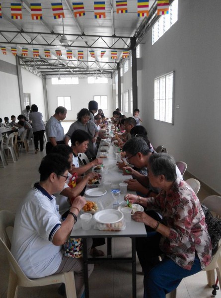 12时正,师父邀请大众到五观堂享用午斋。
