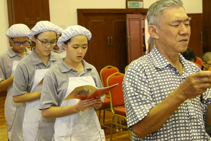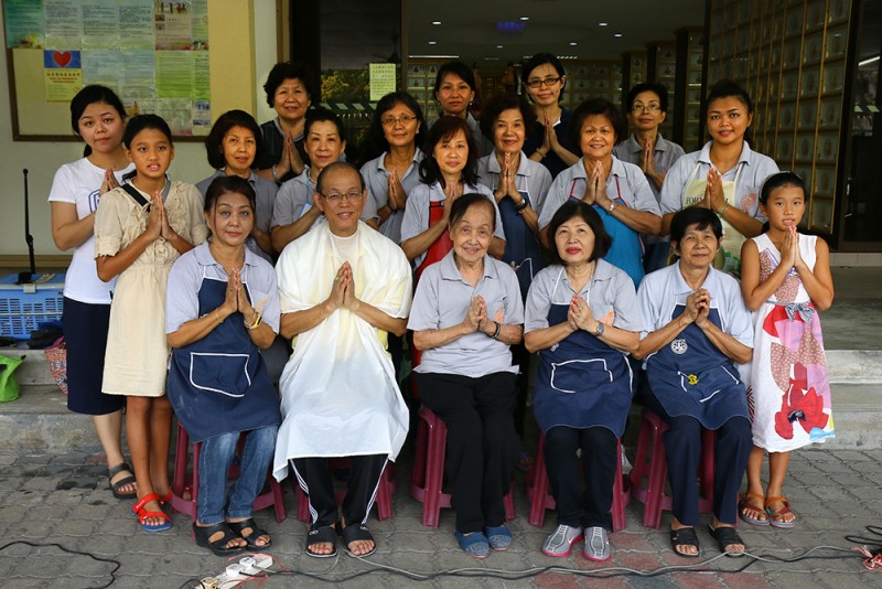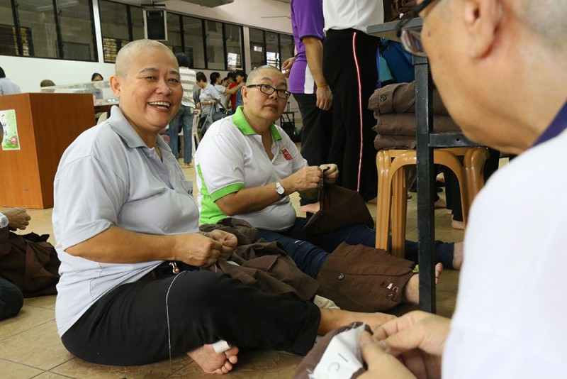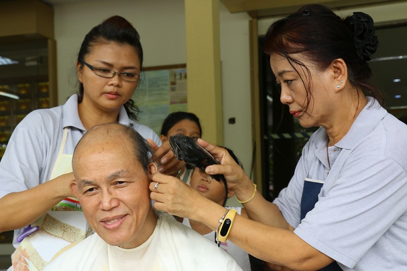 在20年前成为檀香寺义工后,他就萌起念头报名参加年尾檀香寺主办的精进佛七,可是万般俗缘缠身,放下不易。然而去年2016年终于坐言起行,暂且放下俗务,毅然报了名。今年2017年旧地重返,第二次落发,一家人也来“助阵“,献上精神鼓励来成就他。