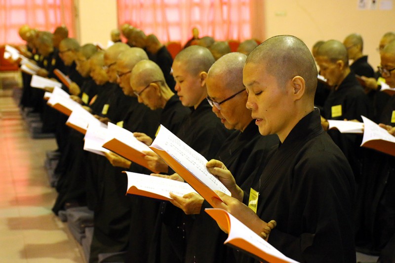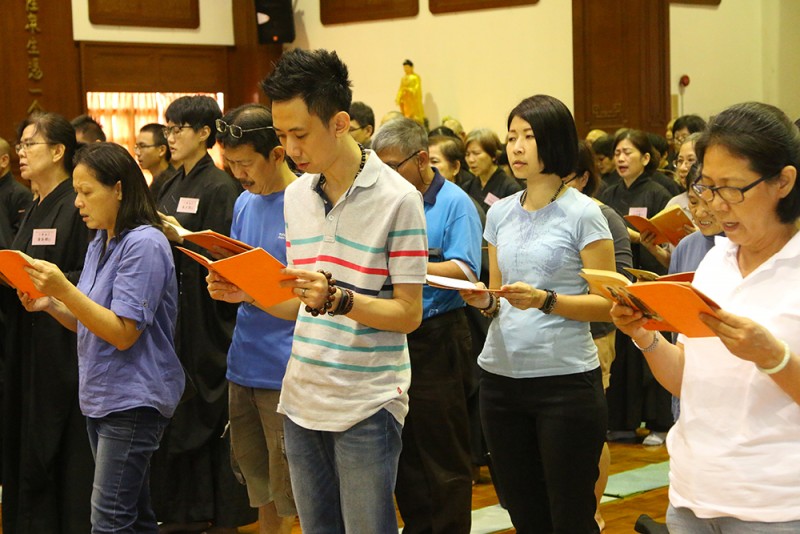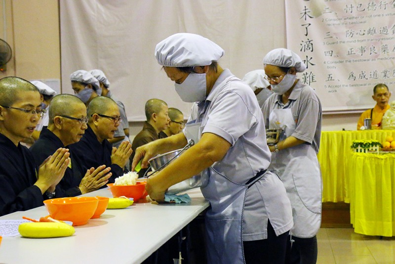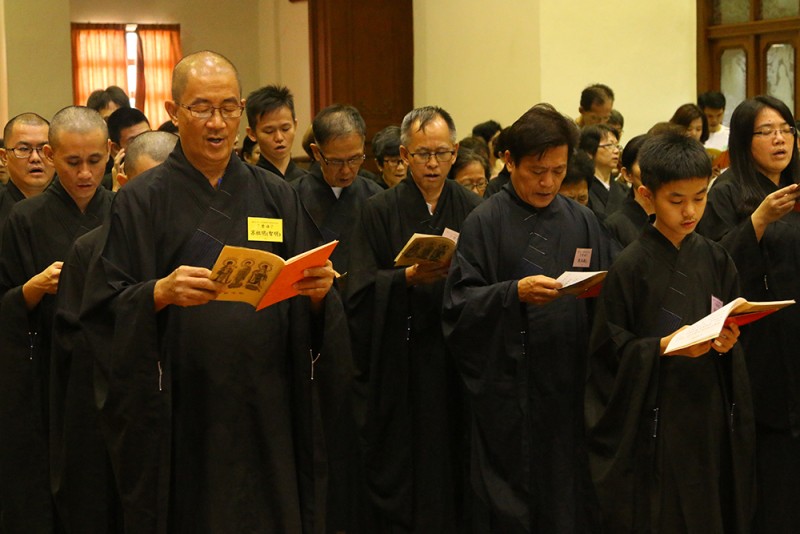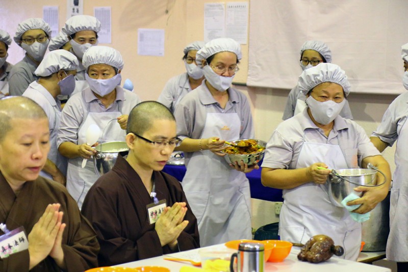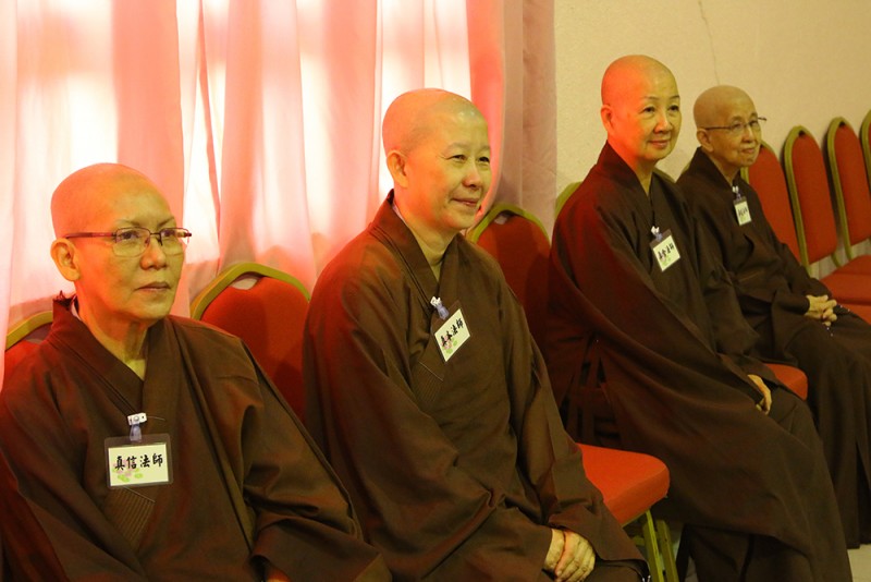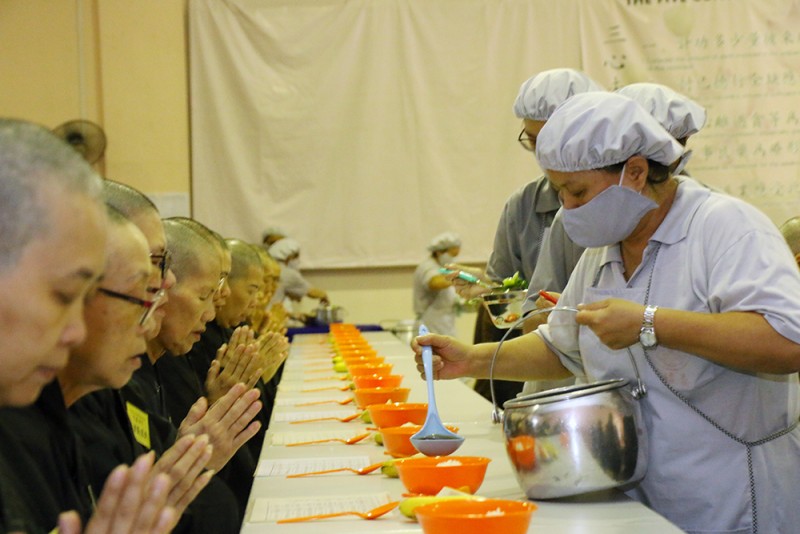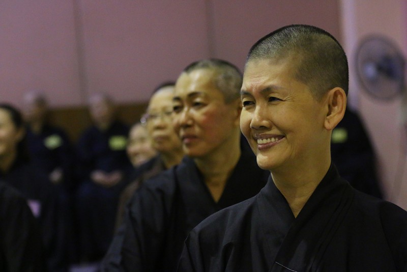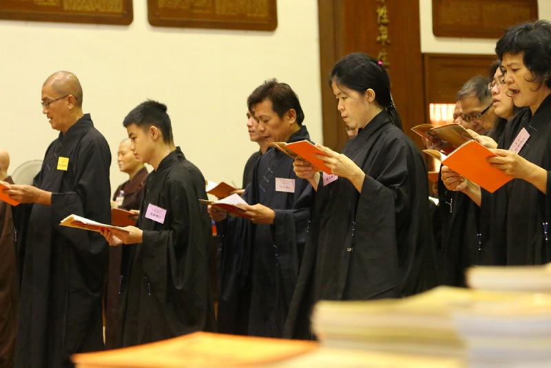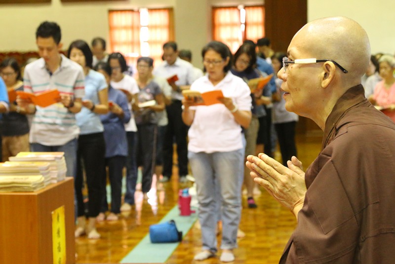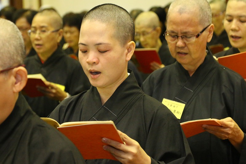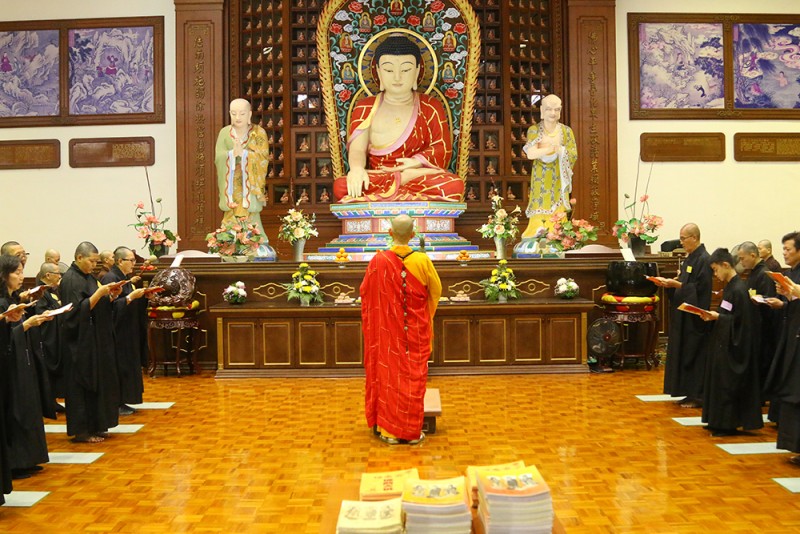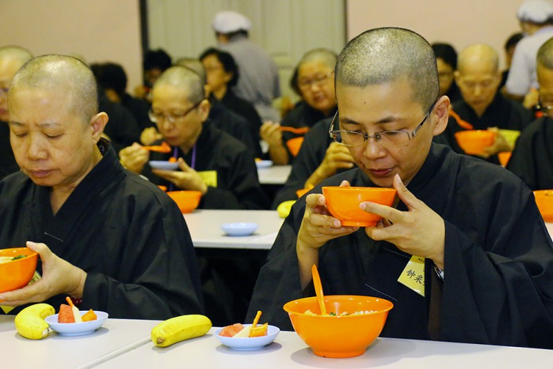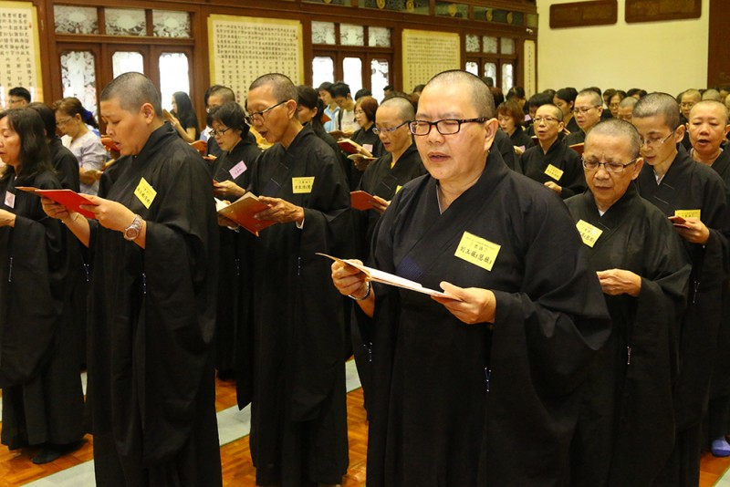 檀香寺年度举办的精进佛七(短期出家)今年共录取155人,前来报到者有144名。当中参加精进佛七者有男众8人、女众74人;而短期出家的则有男众16人、女众46人。