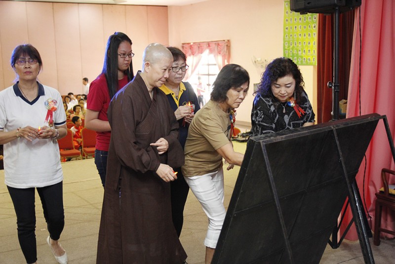会上分批举行联合点灯仪式。在仪式及台上演出完毕后,活动也告一段落,与会者也移步至隔壁享用丰富的素食自由餐。出席仪式者包括真信法师等。檀香寺住持唯悟法师也在较后与大家一起享用午餐。