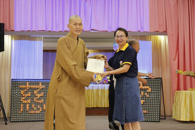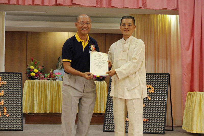 会上由真如法师代表在主席许立全陪同下,颁发奖状给义务医师,分别是:吴果强、陈如炳、李群雁、林莉容、甘美绣、周慧明、陈佩贤、王绥雰、王敏鹏、陈素华、钟秀爱;许立全也颁发纪念品给参与演出的个人及团体代表。