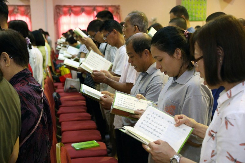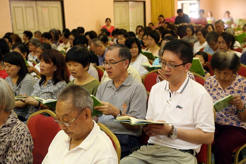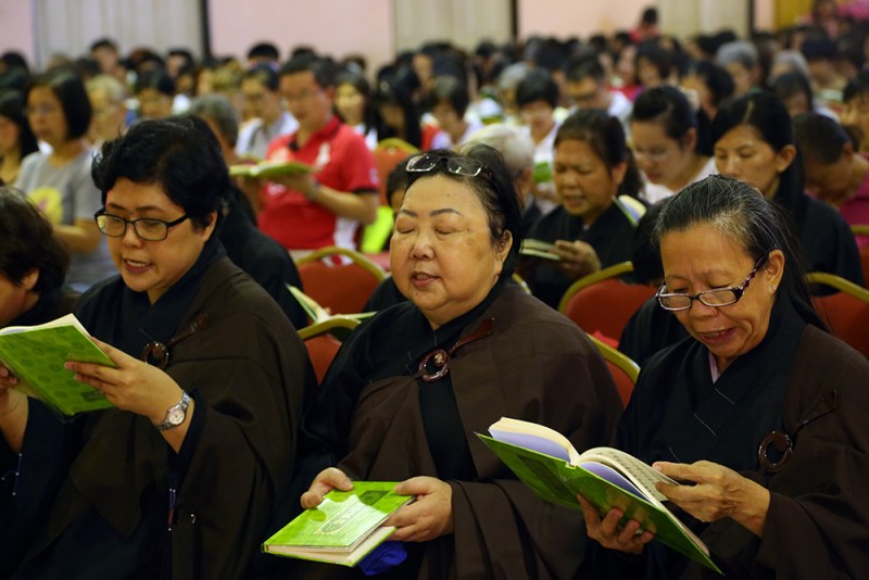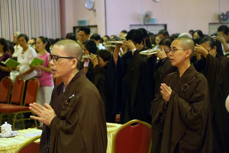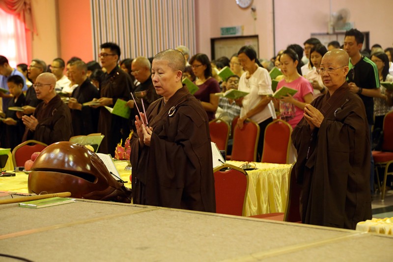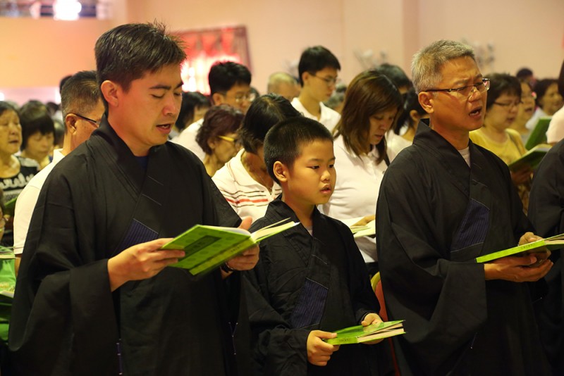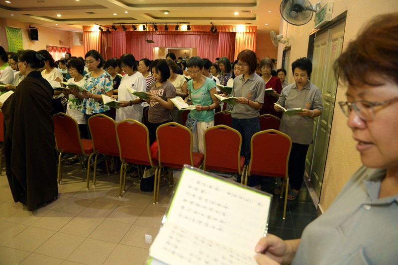 每逢清明倍思亲,约千名信众踊跃报名参加於峇六拜檀香寺五楼多用途礼堂举办的清明超渡法会,在缅怀先人时也以共修《三时系念佛事》回向先人。