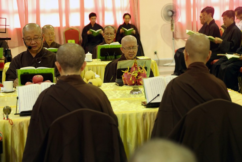 2.《三时系念佛事》用于作法度亡。此二者皆由: 诵经、持名、讲演、行道、忏悔、 发愿、唱赞等,七部分组成; 且每一时佛事,亦包含此七个项目.