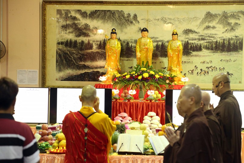 法师也讲解,讲解何为三时及系念。法师说为元朝中峰国师提倡的净土宗念佛法门之一,主要目的在: (1)规劝我们(生者),依净土念佛的修持而得度; (2)同时也依弥陀之愿,劝导亡者往生西方极乐世界,永离茫茫业海与六道轮回之苦。