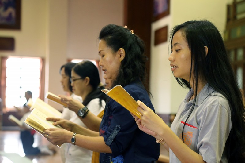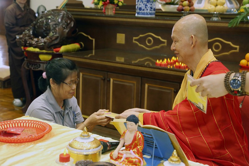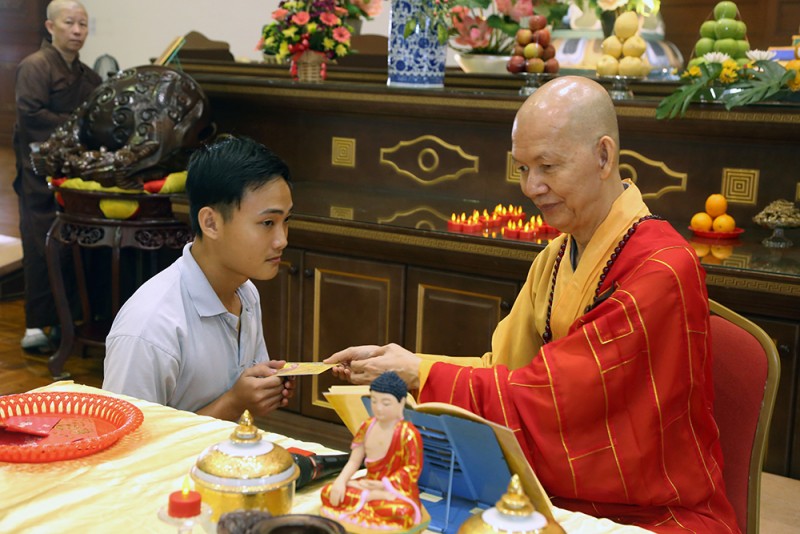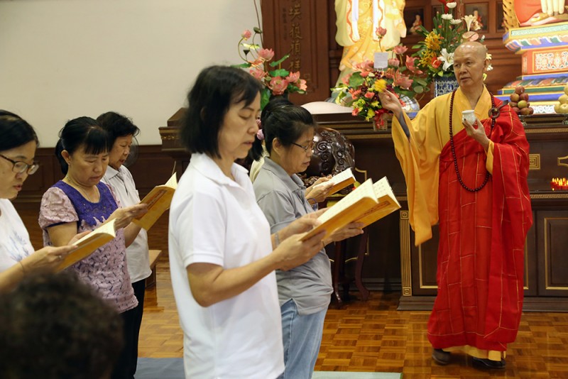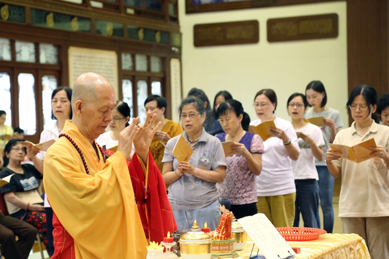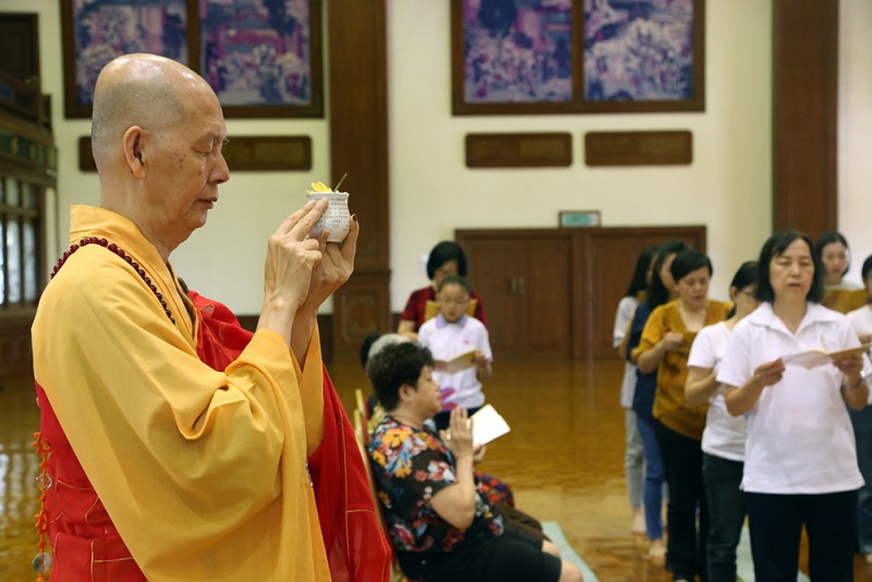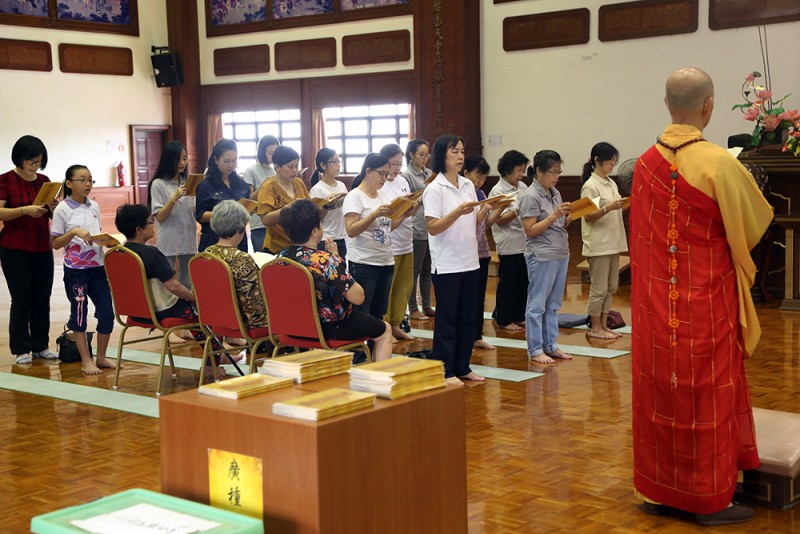 此三皈五戒仪式在中午12时至2时举行,其中有3人受持五戒,另22名皈依佛、法、僧三宝的信众则有4名中、小学生及18名大成年人,包括一名檀香寺职工。