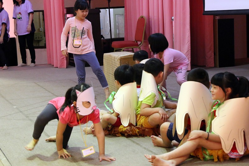 孩童在两天的团康活动中学习歌曲包括《感恩》、《牵牛花》、《诚实就不怕》、《佛光照耀你》等。