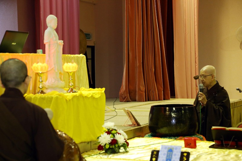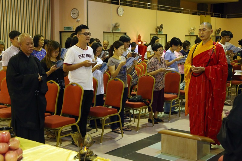 檀香寺于2018年9月3日晚上熏坛洒净,为今年的孝亲法会掀开序幕。真如法师主持洒净仪式,在念诵大悲咒和心经时,到延生坛和净土坛洒净,过后开示佛理,和念诵阿弥陀经。