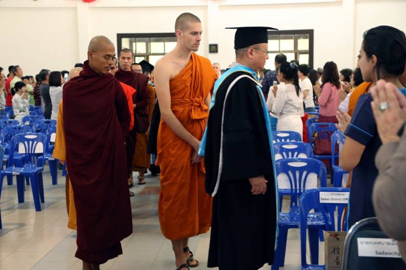国际佛教大学于2018年9月23日举行第11届毕业典礼。与会大众唱诵三宝歌后,一个简单隆重,向三宝献灯的仪式掀开了大会序幕。