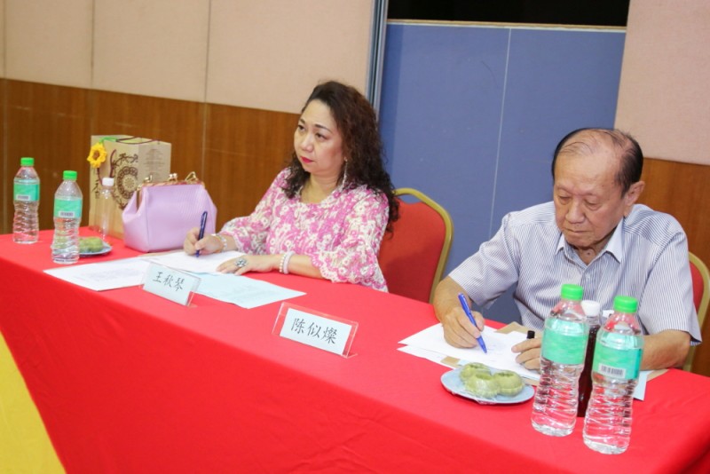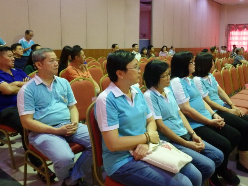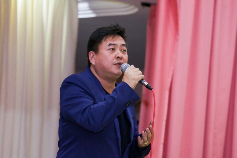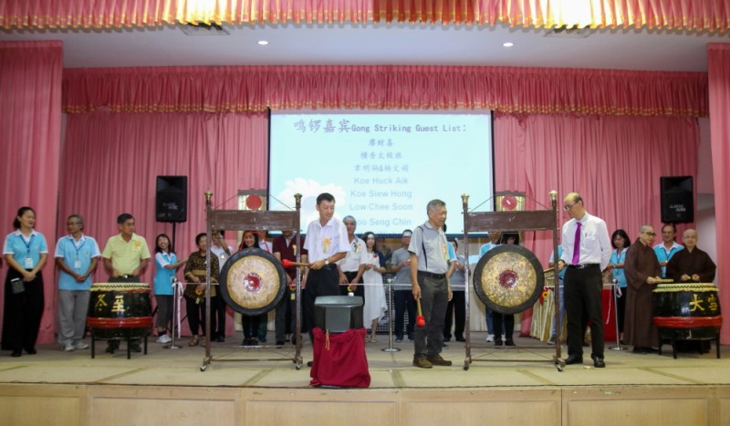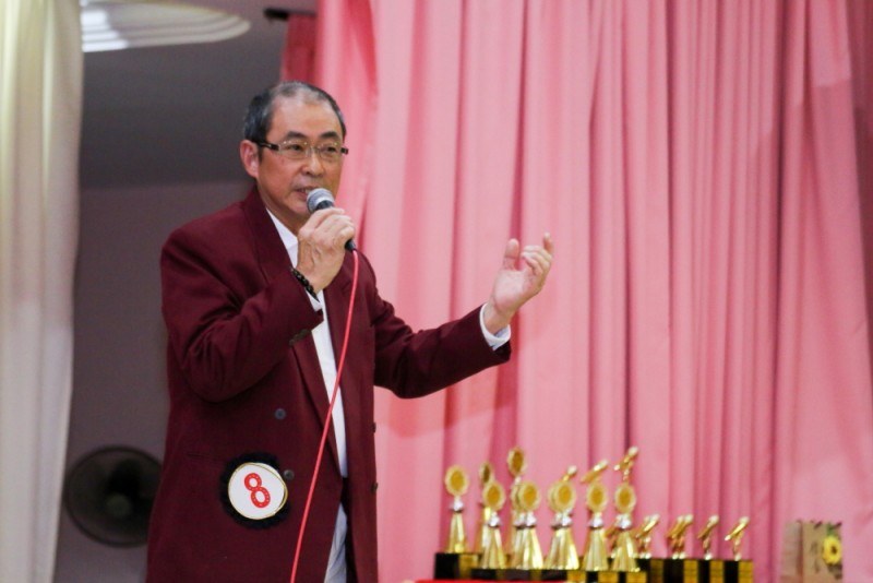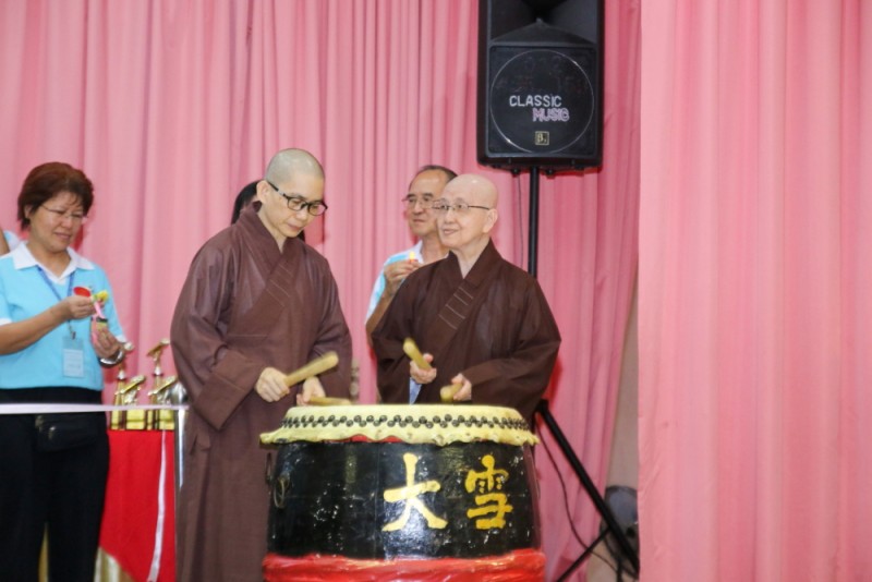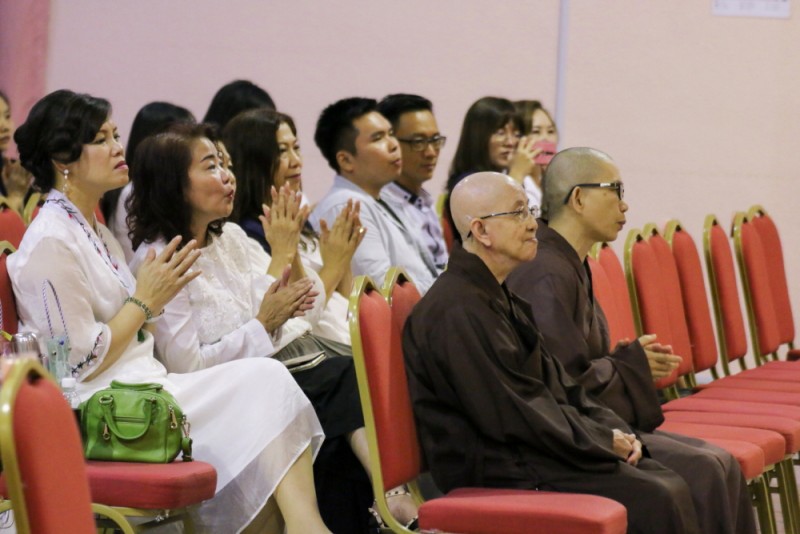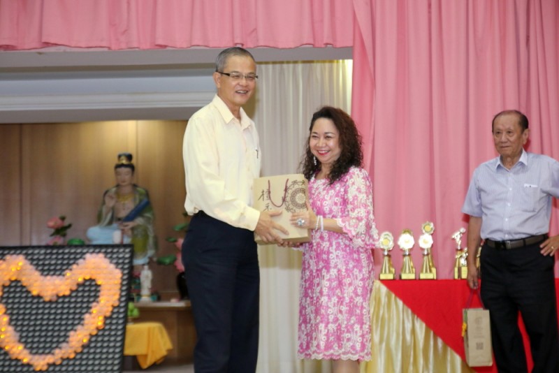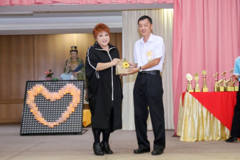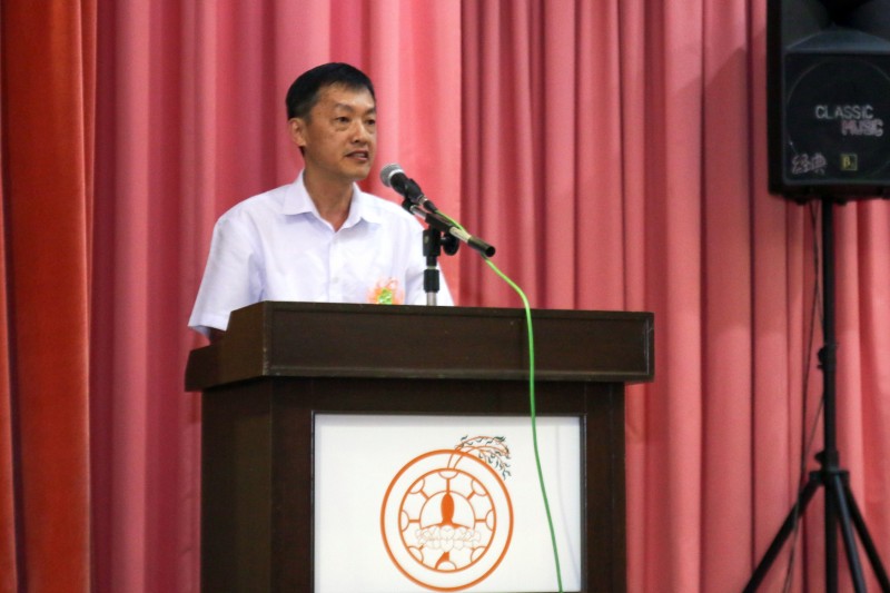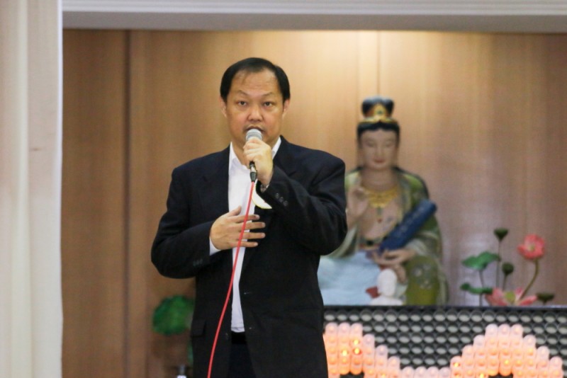 筹委会主席廖财喜在台上致词中感谢所有筹委会、檀香寺职工,义工在这几个月来的协助与付出。