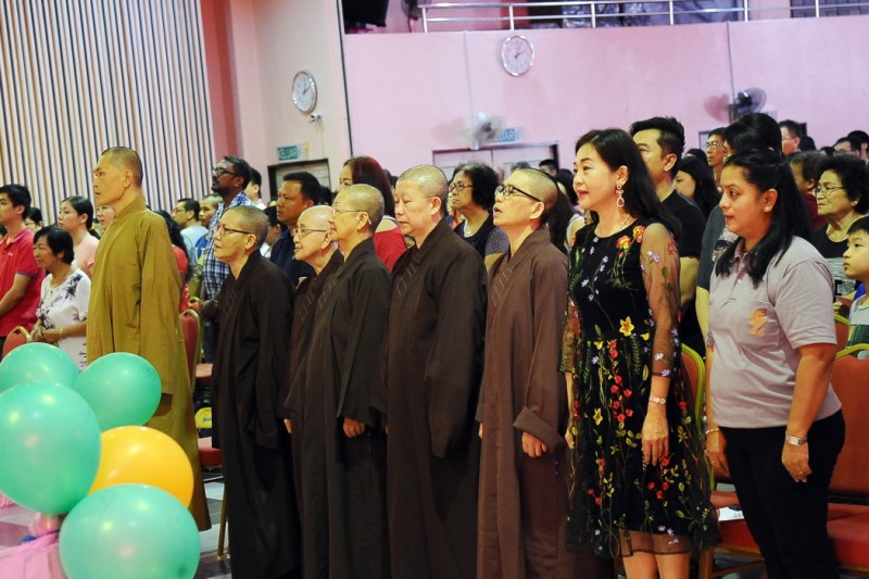 11月17日(星期六)即是檀香幼儿园第27届毕业典礼暨颁奖礼了,师生们一早便到幼儿园为当天的表演做准备。中午时分,家长们亦纷纷入座礼堂内。中午两点整,典礼正式开始。在奏唱国歌及三宝歌之后随即为檀香寺住持上唯下悟法师代表真如法师及幼儿园园长Sandhi老师致词。