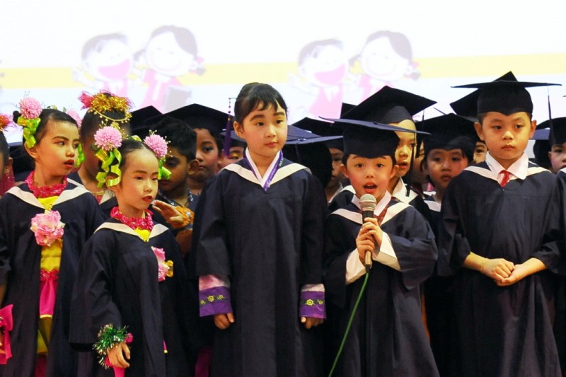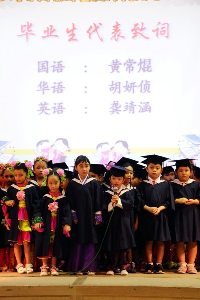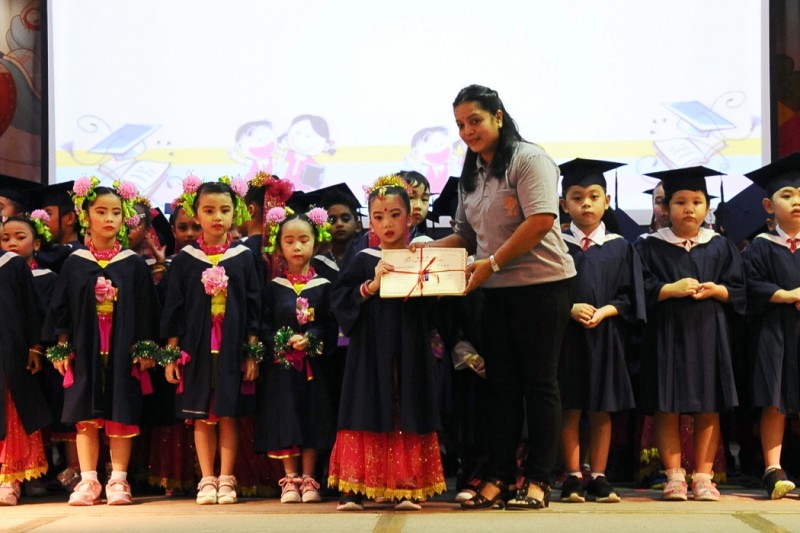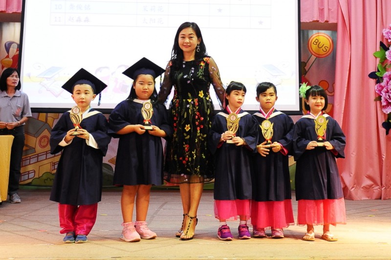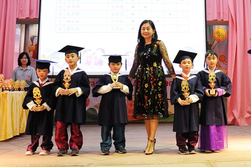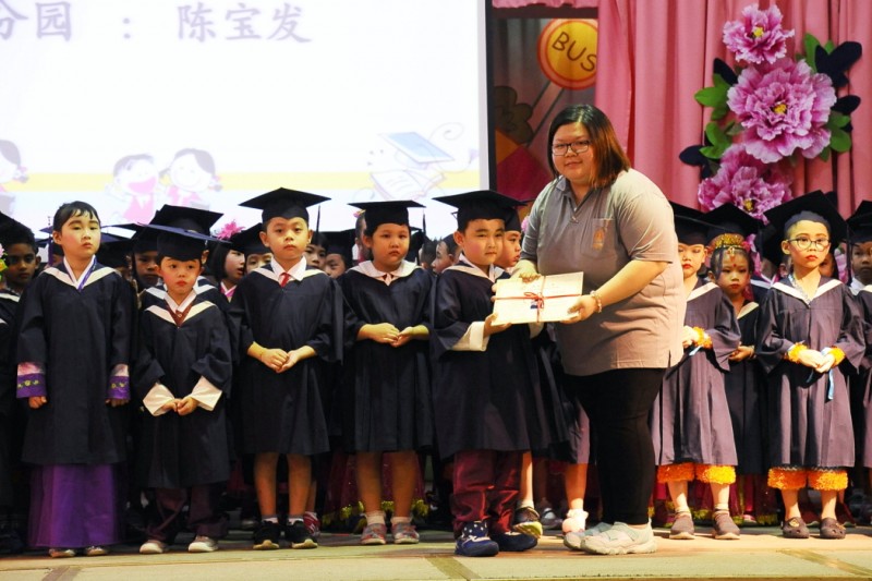 颁奖礼后随即进行毕业仪式。今年共有128位毕业生。待毕业生入列后便由幼儿园园长Teacher Sandhi 颁发毕业证书予总园毕业生代表赵芷萱;新港分园主任施老师颁发毕业证书予其毕业生代表罗苡恩;发林分园主任李老师则颁发毕业证书予其分园毕业生代表陈宝发。毕业生代表黄常焜、胡妍侦及龚靖涵以三语致词后,众毕业生齐声高唱《毕业歌》。紧接下来的环节便是万众期待的余兴节目啦!