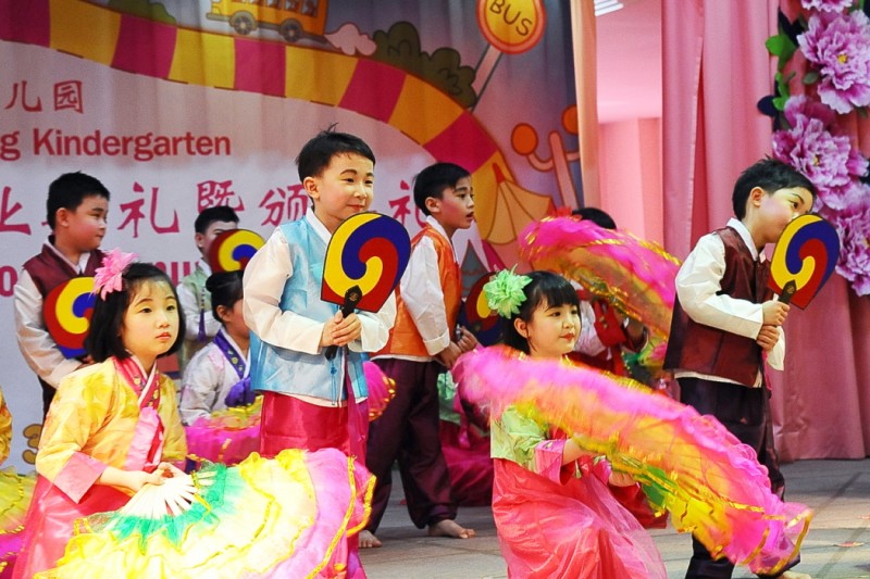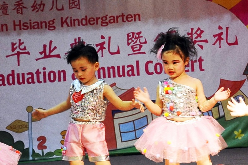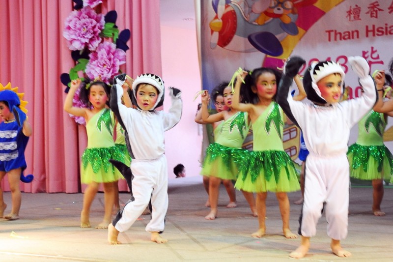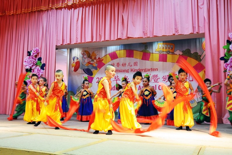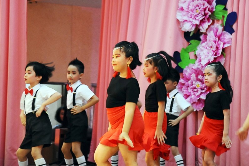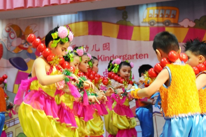 人生每个阶段都是奋斗!只要坚持我们自己的信念,幸福就在我们面前。这是发林分园小朋友所带来的《Fight Song》。其他的表演还包括总园幼二班的印度舞、《冰糖葫芦》,新港分园的马来舞蹈《Siapa Dia》及发林分园的韩国舞曲《阿里郎》。