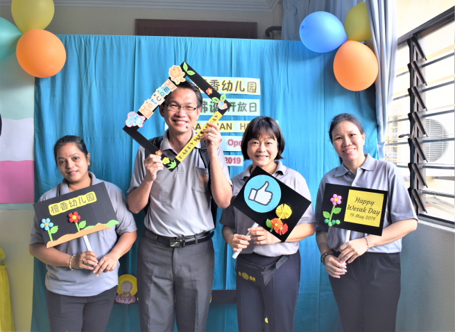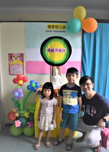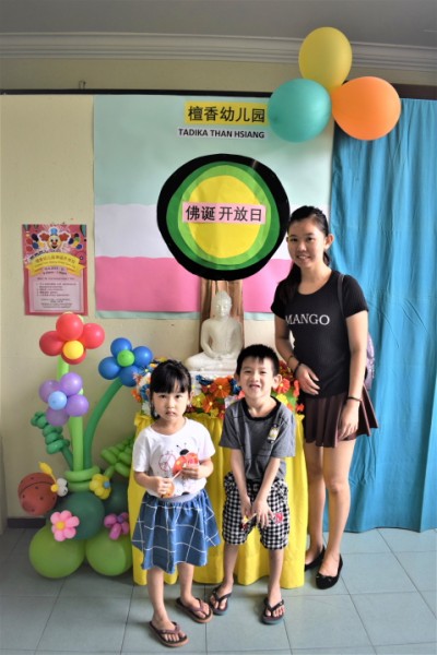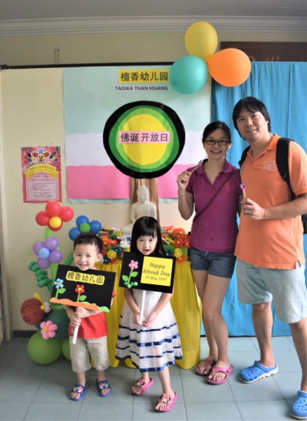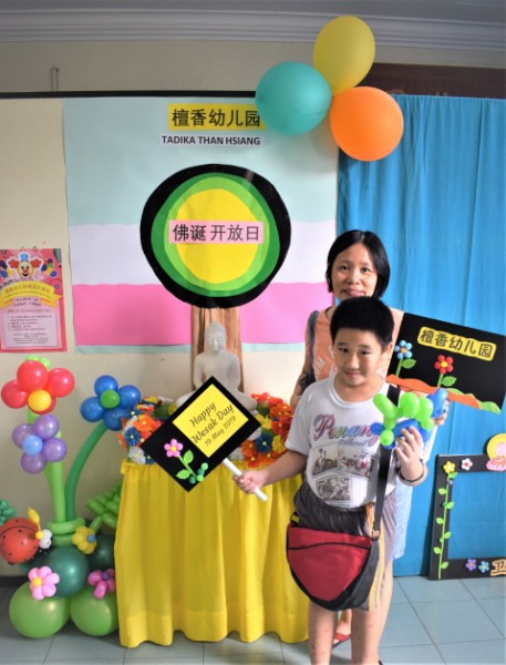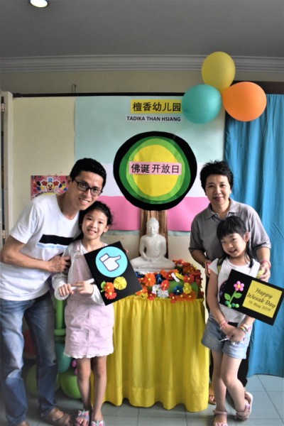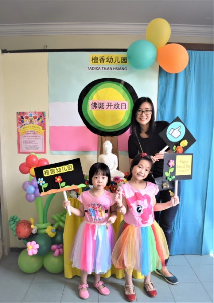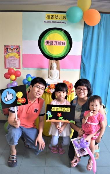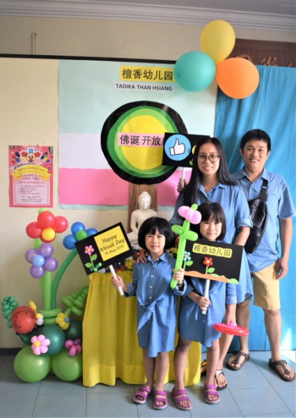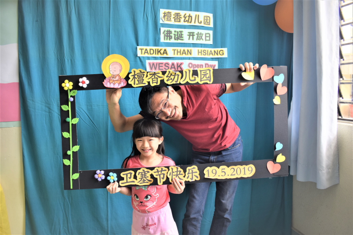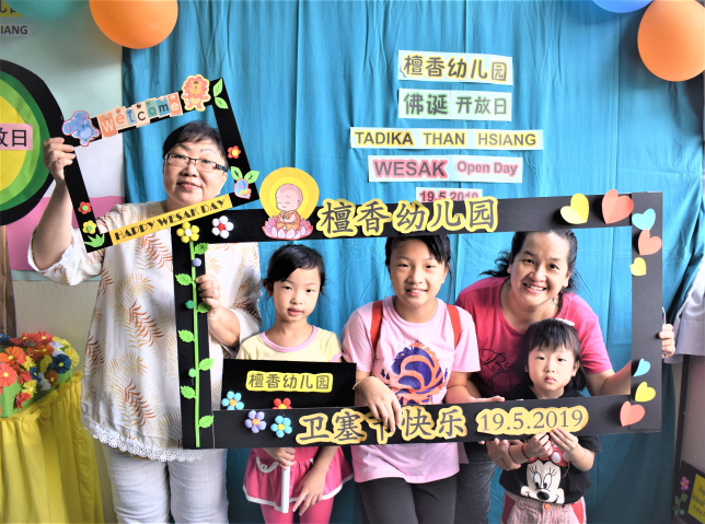 幼儿园特设计了一个拍照场地,大家可以手持着专为卫塞节设计的相框拍照留念。孩子们的可爱、活泼都表露出来。照片可以通过檀香幼儿园脸书下载。