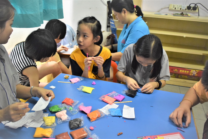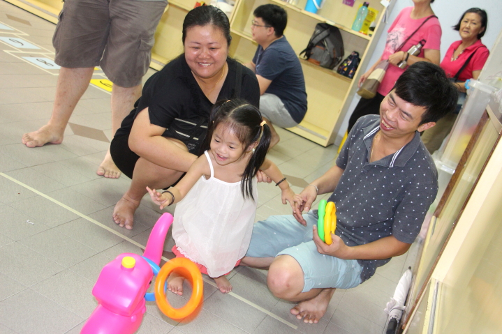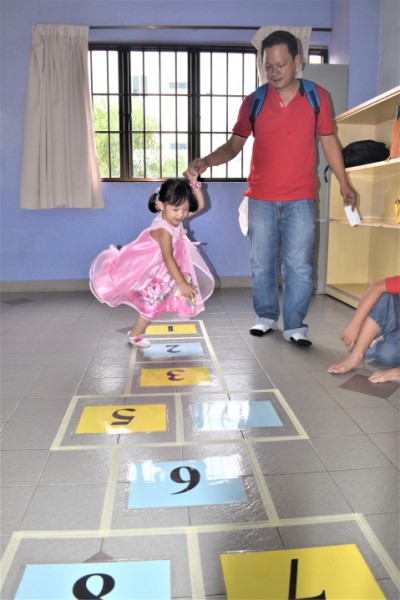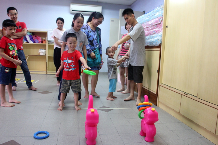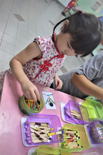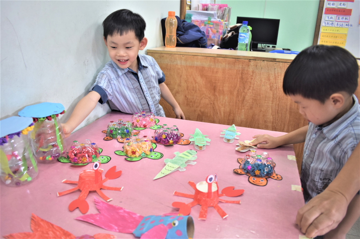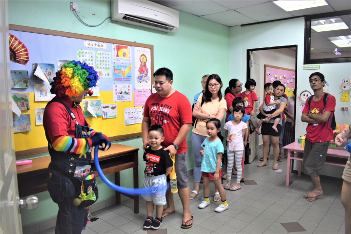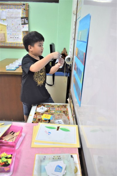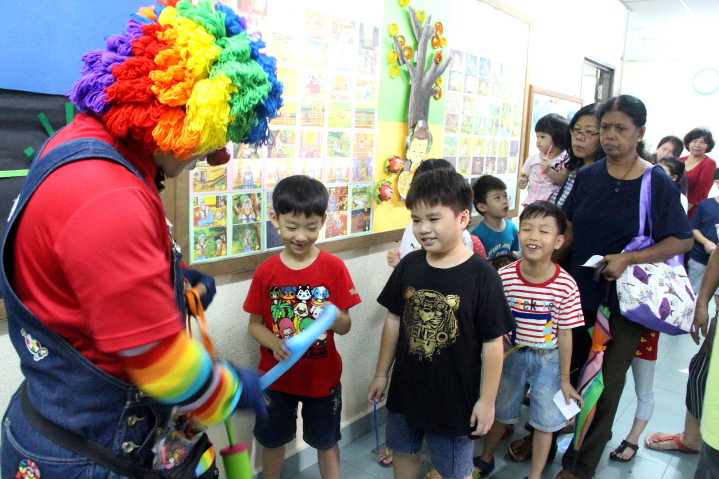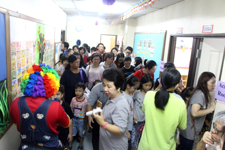 当天也有小丑表演环节,心灵手巧的小丑用气球制作各式各样的模型。孩子都围着小丑等待拿气球,慢慢地人潮汹涌起来,把幼儿园的走廊塞得水泄不通。幼儿园也展示孩子们的手工品。孩子们天马行空,创作了题材多样的作品,有水族馆、菩提树、花朵、小动物等。其中一个课室摆了日常教学中使用的教具。这包括许多鼓励孩子们动脑筋的益智游戏,如利用冰淇淋棒排列的形状、动物、水果等。当中不少教具都来自日常生活中容易获得的东西,老师们发扬环保精神废物利用,把这些物品改造成有价值的教具。