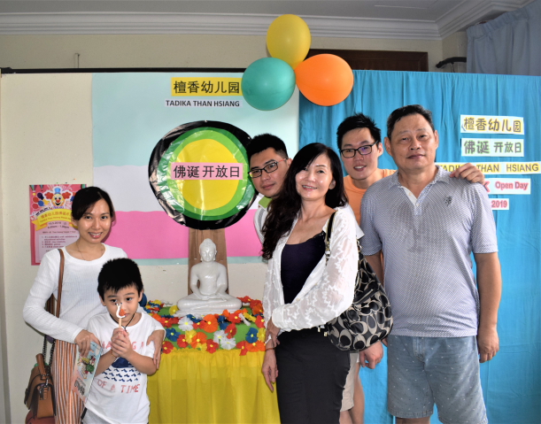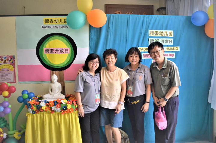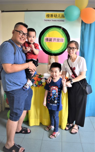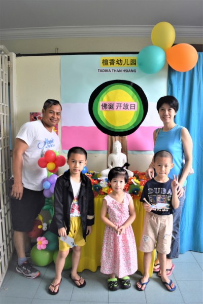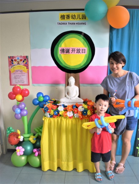 农历四月十五日是卫塞节。在欢庆佛陀诞生、成道和涅槃3大喜庆的当儿,檀香幼儿园也于当天举办开放日。今年幼儿园的开放日安排在檀香寺1楼幼儿园课室。开放日从上午8时开始,可是一大早就可见到人潮逐渐涌入檀香寺。