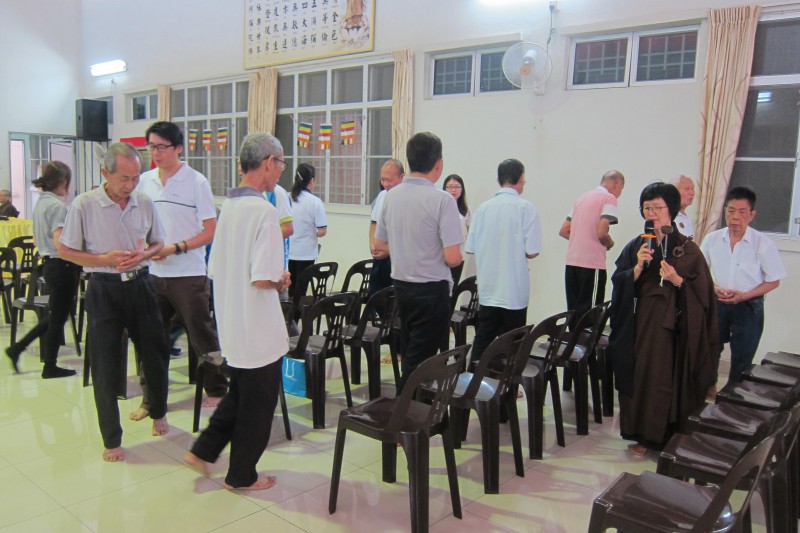 真如法师开示完毕后,大众出班享用茶点才继续共诵“第二系念”和“第三系念”。此时,电视屏幕上出现熊熊烈火的照耀,以及西方三圣前来接引的影像,大众祈求三宝加被〈净土坛〉的先人或冤亲债主皆能往生西方极乐净土,而〈延生坛〉的祈福者都能增福延寿,并祝福参与法会的信众们福寿康宁。孝亲法会在做完晚课后画下完美的句点。大众欢喜地享用晚餐和进行善后工作。