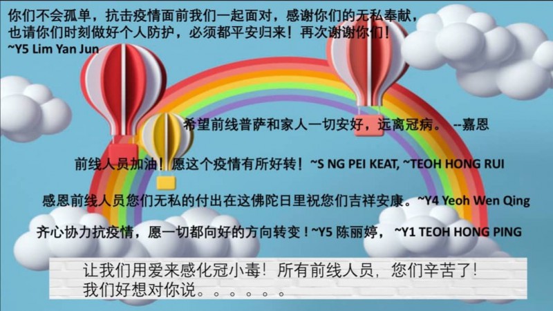 在这个新冠疫情时刻,小菩萨们以感恩心写下对前线人员的祝福话语,祈愿人人安康,天下和平。