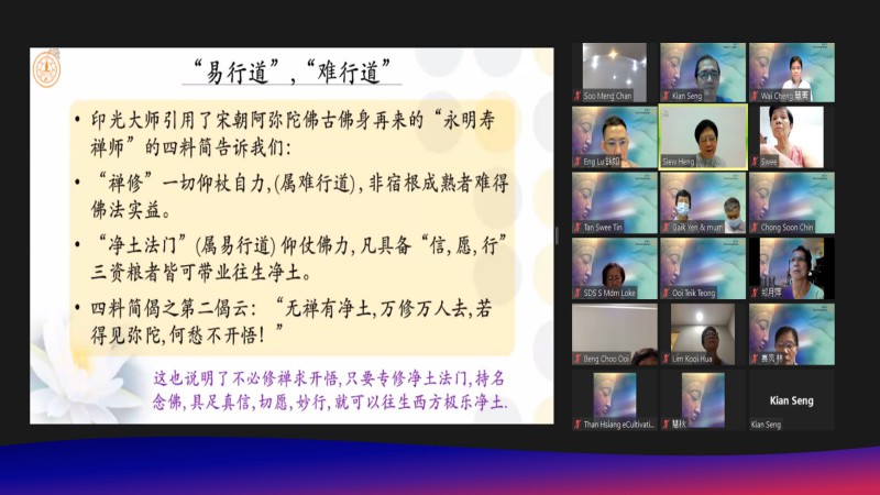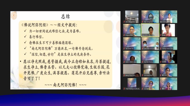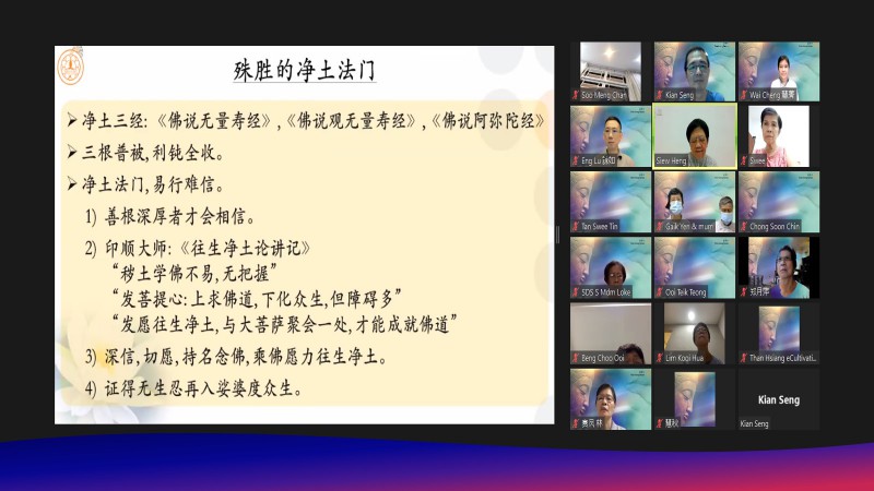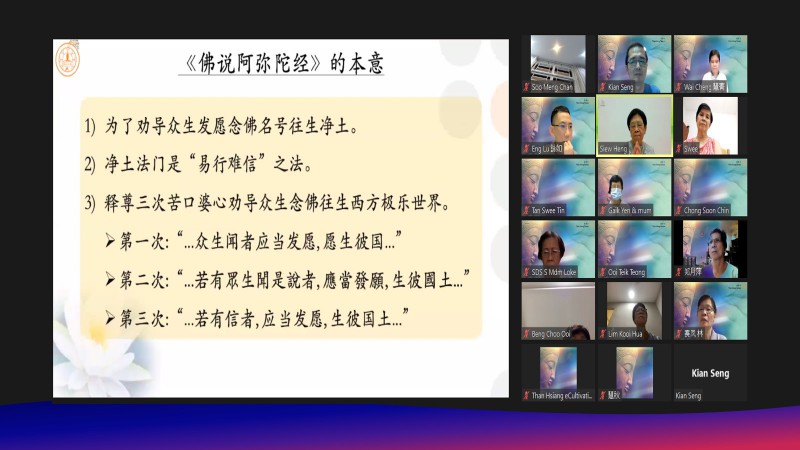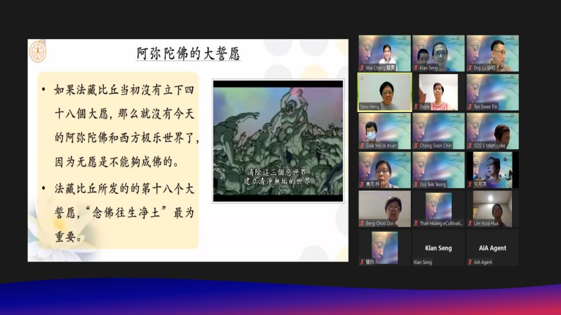 叶居士首先与大众分享阿弥陀佛的大誓愿视频。《佛说无量寿经》中法藏比丘所发的四十八大愿中, 特别提出第十八大愿 “念佛往生净土”最为重要。