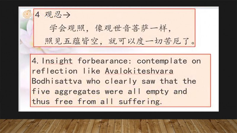(四)观忍:学会观照,像观世音菩萨一样,照见五蕴皆空,就可以度一切苦厄了。