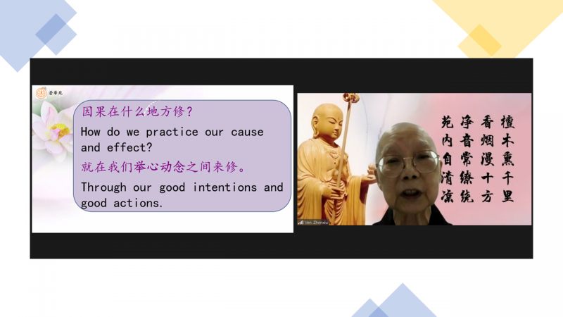 世间的人也知道因果,但往往只承认一世因果,不承认三世因果。只承认一世因果,虽然有因果的观念,从根本来讲仍然是断灭见。只有承认三世因果,有现在、有过去、有未来,生命贯通三世,一切业果行为贯通三世,这才是佛教因果的特色、佛教因果的要义、佛教因果的根本宗趣。只有懂得三世因果,只有承认三世因果,只有以三世因果的思想作为我们信心的准则,作为我们一切言行的准则,修行、作善事、做好人,才真正有了思想基础。否则的话,一切善法无从建立,一切恶法也无从制止。我们现见世间的种种问题,杀人、放火、抢劫、奸淫诸多乱相,究其根本,都是由于不相信善有善报、恶有恶报、因果通三世,这些根本的道理而产生的。佛陀讲的三世因果,是挽救世道人心的根本真理,是引导众生断恶修善最强有力的思想理论,是建立世出世法的根本原则。有因有果还要有缘,缘的面包括很广。因为时间的关系,无法与各位分享,只好等待因缘了!