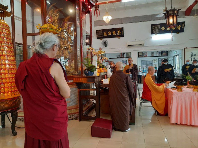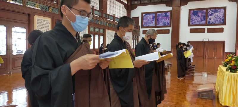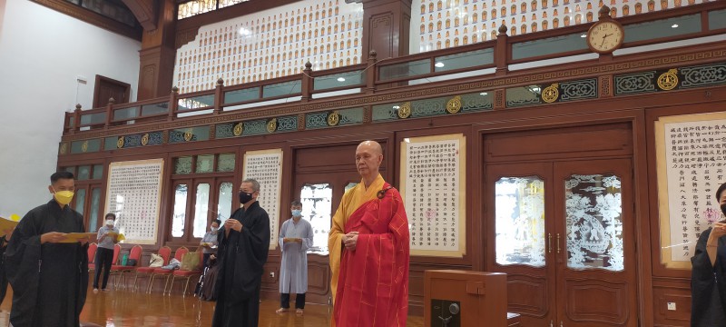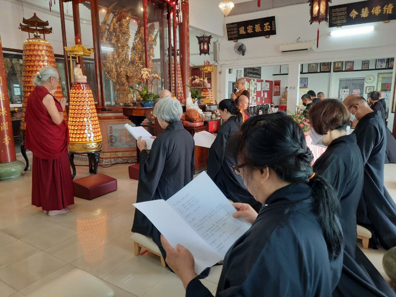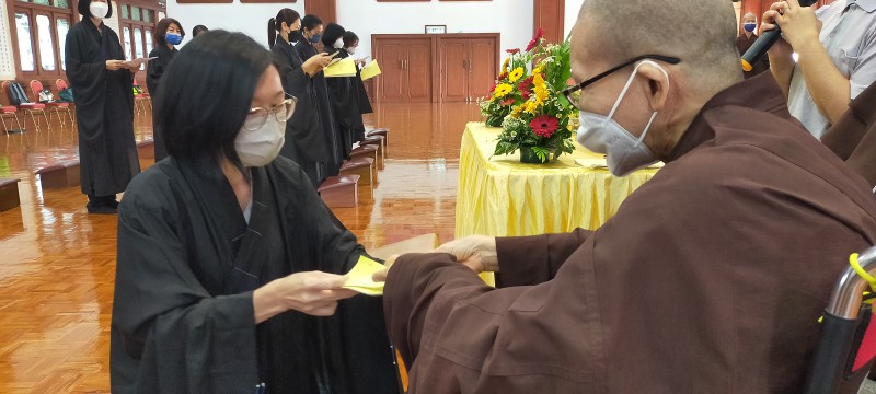 在这殊胜的日子,檀香寺授戒及成立「在家僧团」的仪式分别在23.10.2022( 星期天)和30.10.2022( 星期天),唯悟法师分别在檀香昙华苑和檀香寺六楼大雄殿传授了五戒,十善戒法,并且有10位男众和15位女众加入了在家僧团,师父的开示令大家法喜充满。