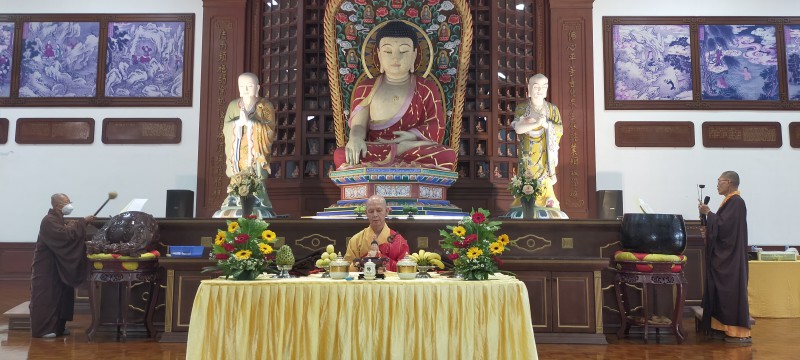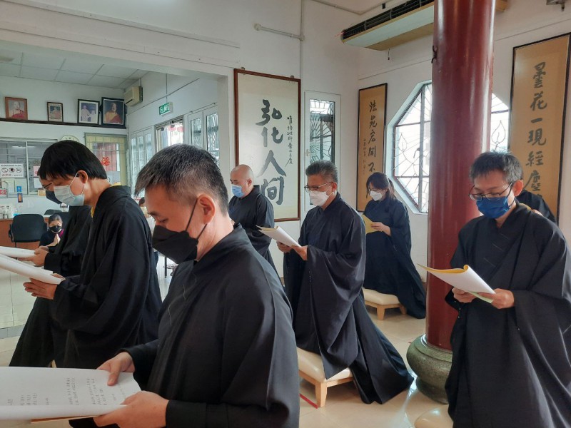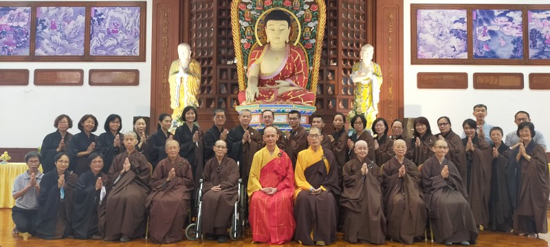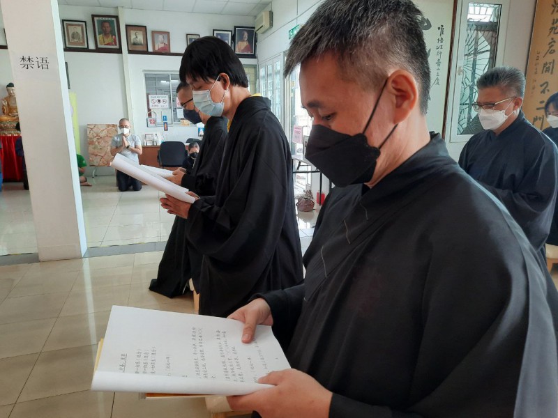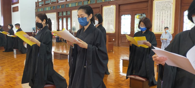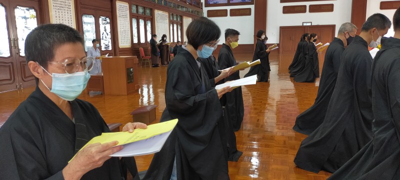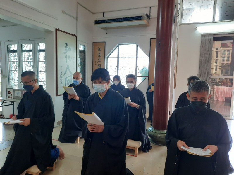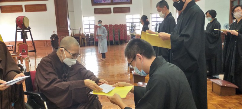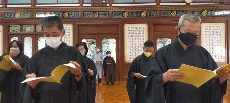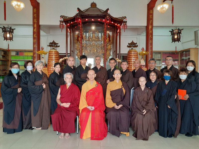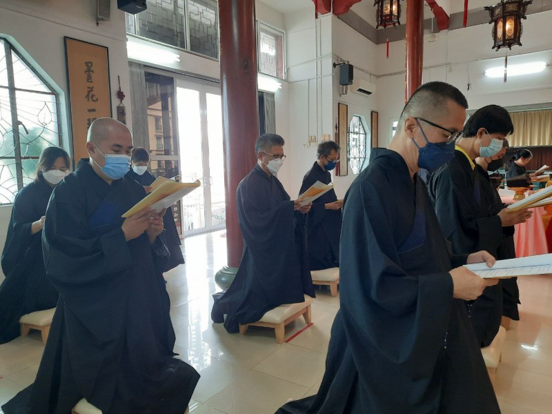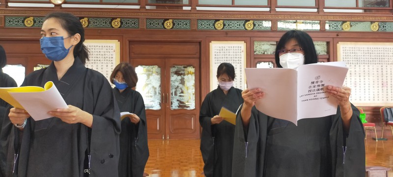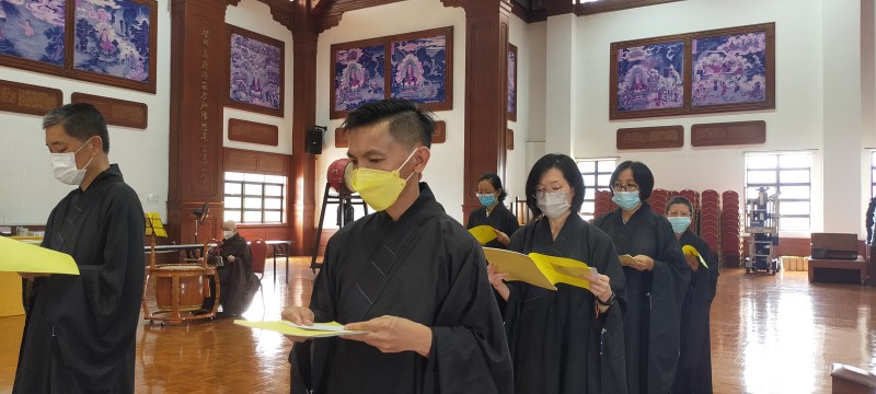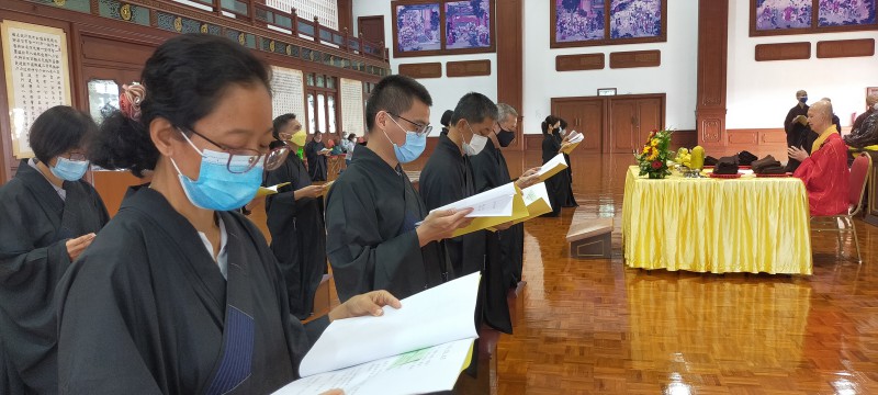 檀香寺开山上唯下悟法师为成员们传授十善戒法,并正式宣告成立本寺的「在家僧团」。